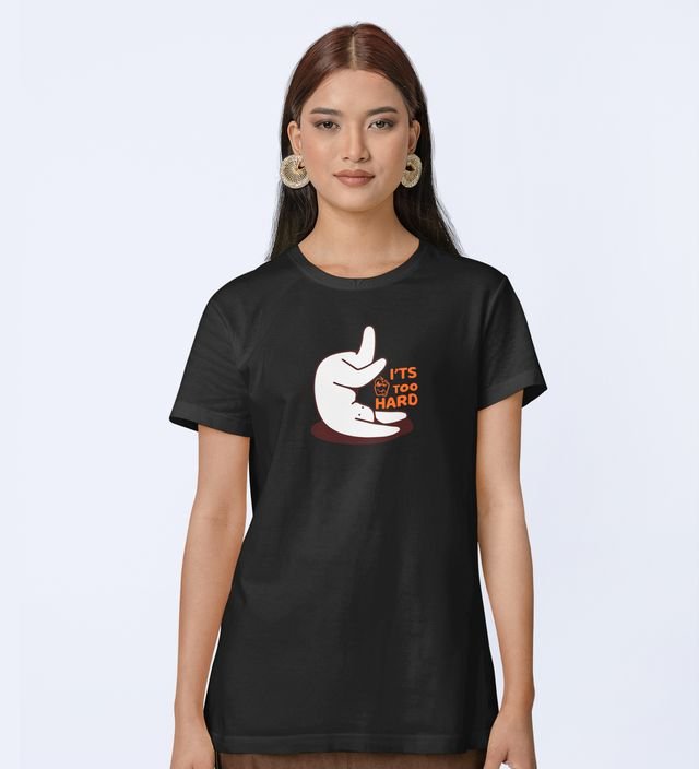 It's Too Hard! Black Round Neck Cotton Half Sleeved WomenT-Shirt with Printed Graphics