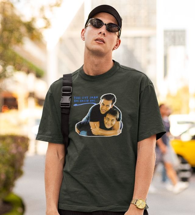 Jaan Bhi Hazir Hai Green Round Neck Cotton Half Sleeved Men T-Shirt with Printed Graphics