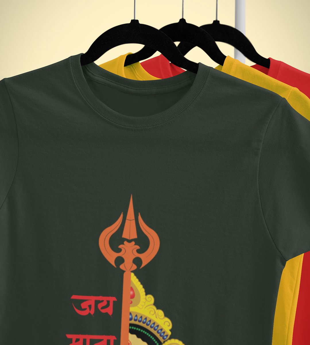 Navratri is a very auspicious festival for hindus. It takes place at the beginning of October and sometimes September. Enjoy the 9 days of festivities with full zeal and make yourself submerged in the love of Maa Durga. Navratri is also known as Durga Puja. And with this Tees, you can shine like a star during this festive season with our navratri themed cotton half sleeved Tshirts. You can pair our t-shirts with trousers and denim of your choice and make it a weekday smart casual or weekend wear. This is durable. This tshirt is smooth and soft which makes you comfortable to wear during all seasons. The printing in it is durable and odourless. It has five sizes, S,M,L,XL,XXL. The Tshirt colour is intact even after repeated washes. It can be kept in your wardrobe and hangers. Please avoid washing mashine to clean this Tee, it may affect the print. Hand wash only. We have brought you many navratri related designs printed on our different colour Tshirts to choose from. Grab it now.