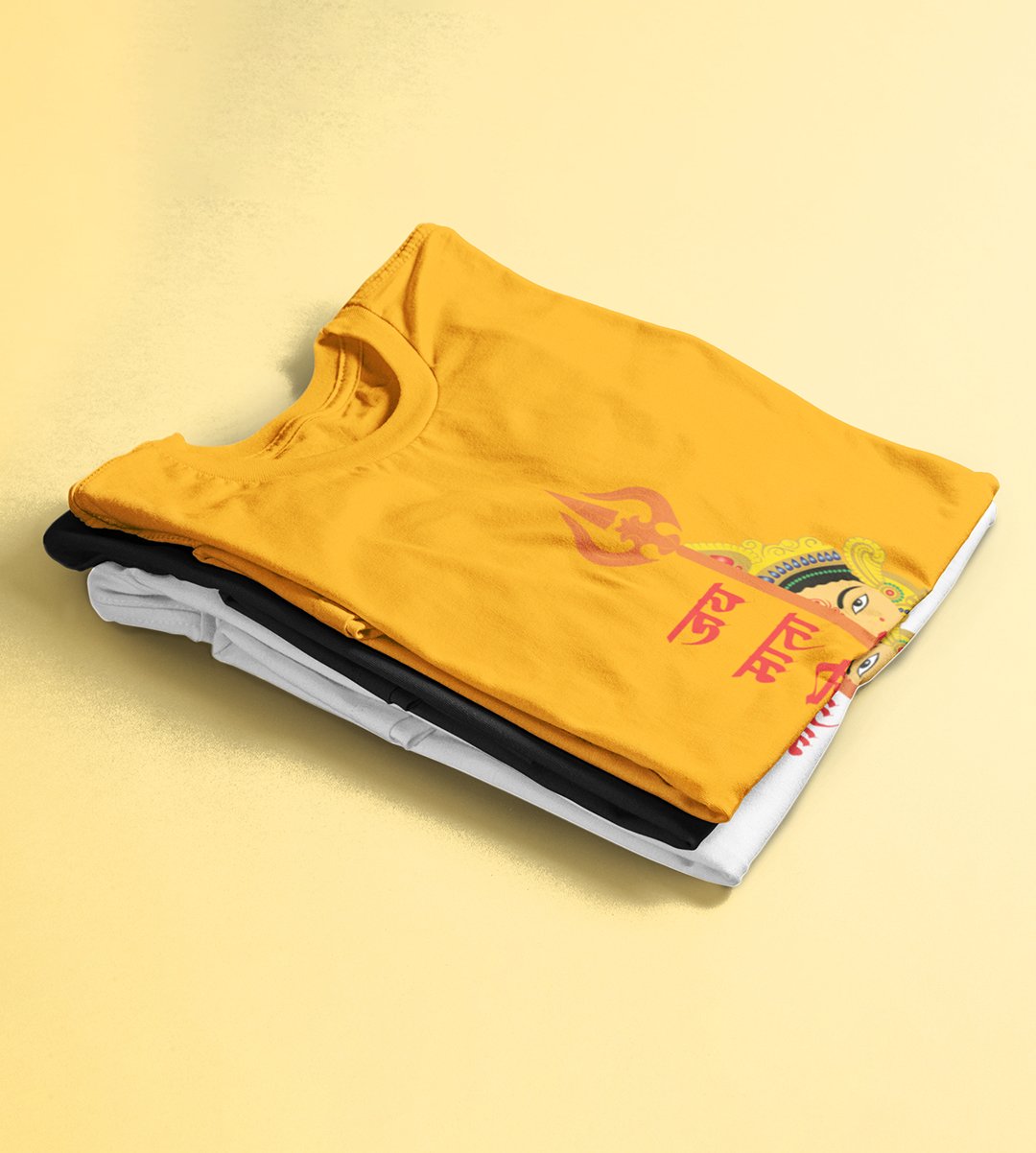 Jai mata di (Trishul) printed unisex adults round neck cotton half-sleeve yellow tshirt specially for Navratri festival/ Durga puja