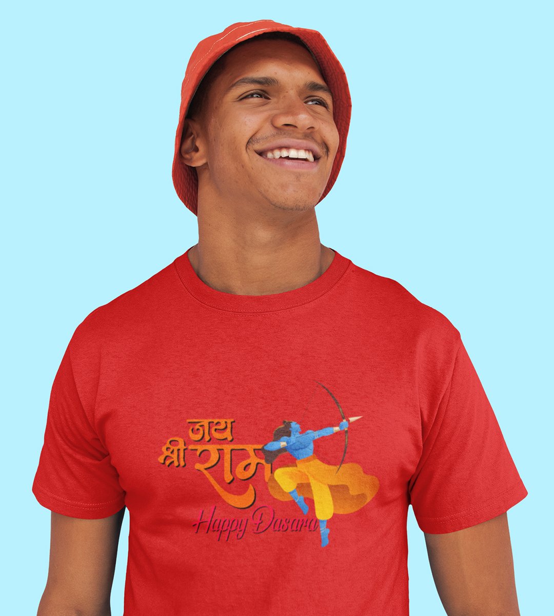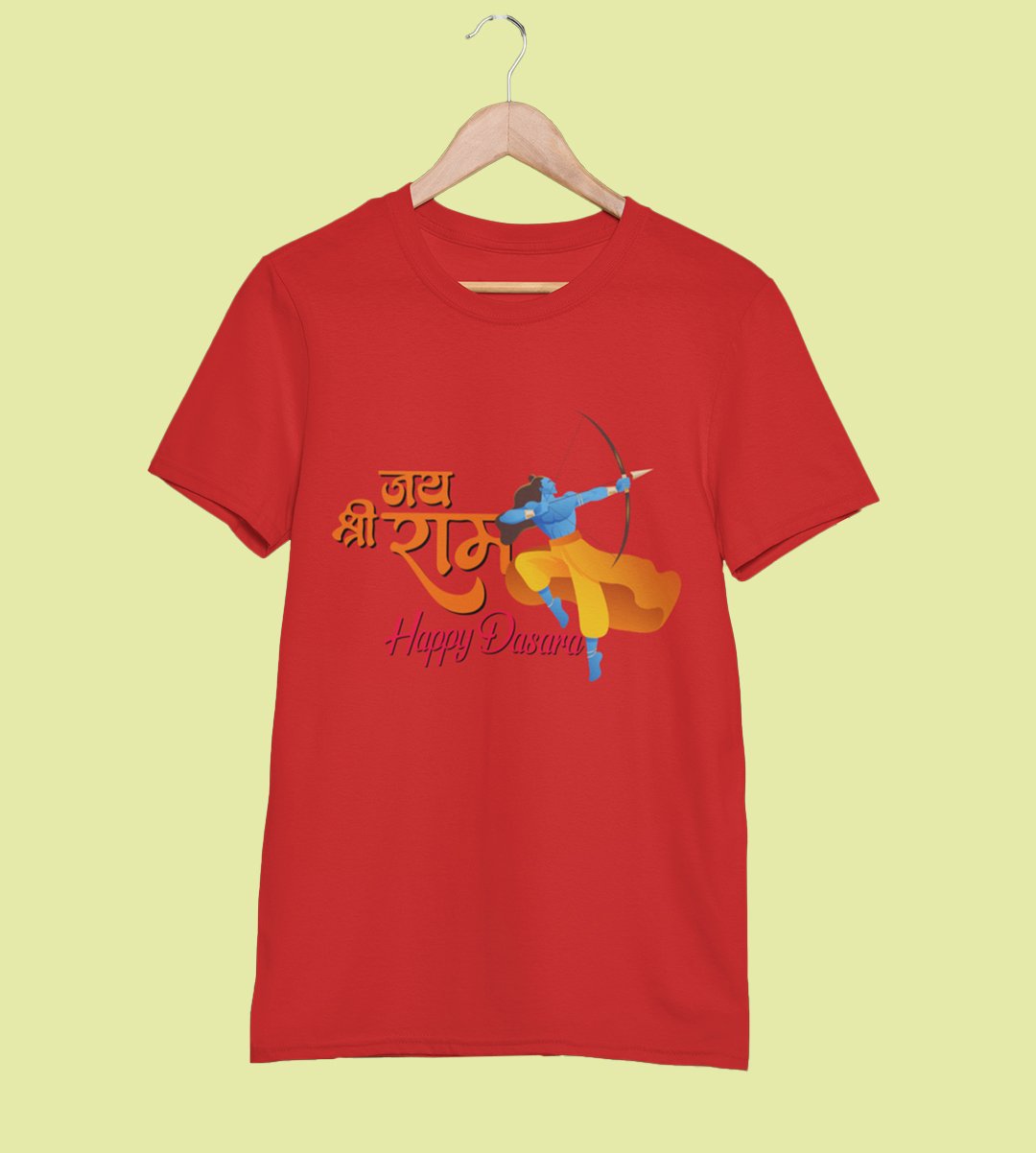 Jai Shree Ram printed unisex adults round neck cotton half-sleeve red tshirt specially for Navratri festival/ Durga puja