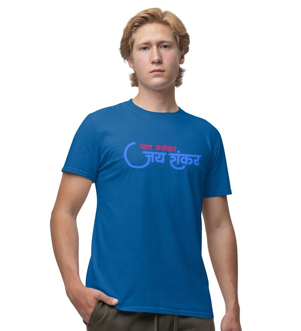 Jay Shankar Blue Round Neck Cotton Half Sleeved Men T Shirt with Printed Graphics