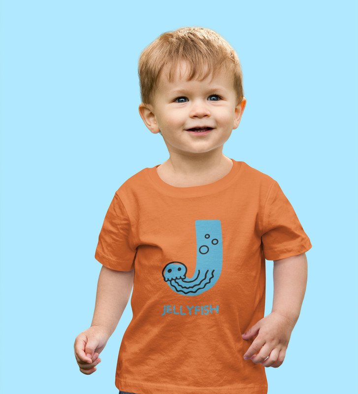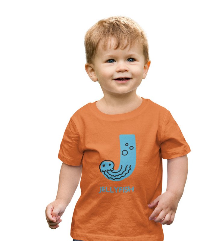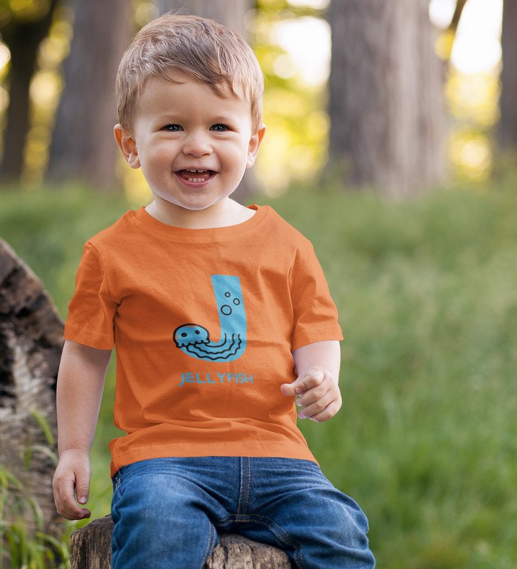 Jolly Jellyfish, Boys Cotton Text Print Tshirt (orange)
