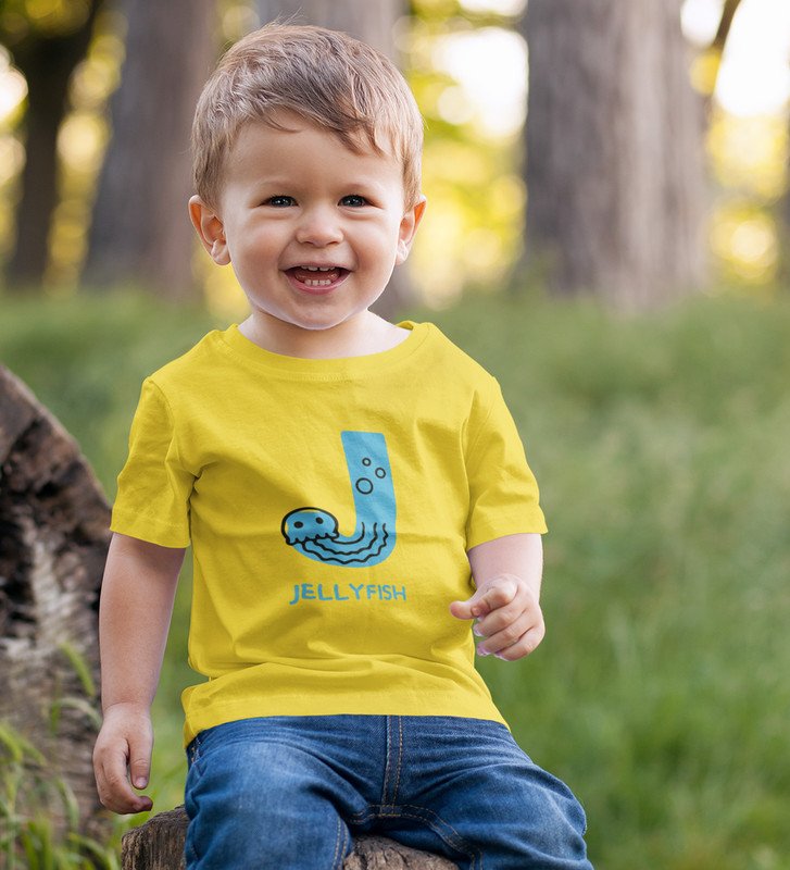 Jolly Jellyfish, Boys Cotton Text Print tshirt (yellow)