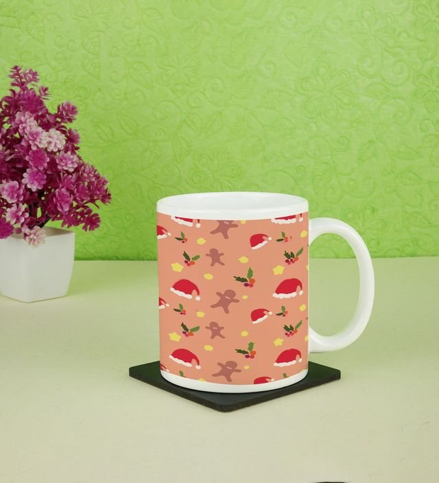 Jolly Santa Hats and Christmas Fun in a Pattern Full Printed Coffee Mug