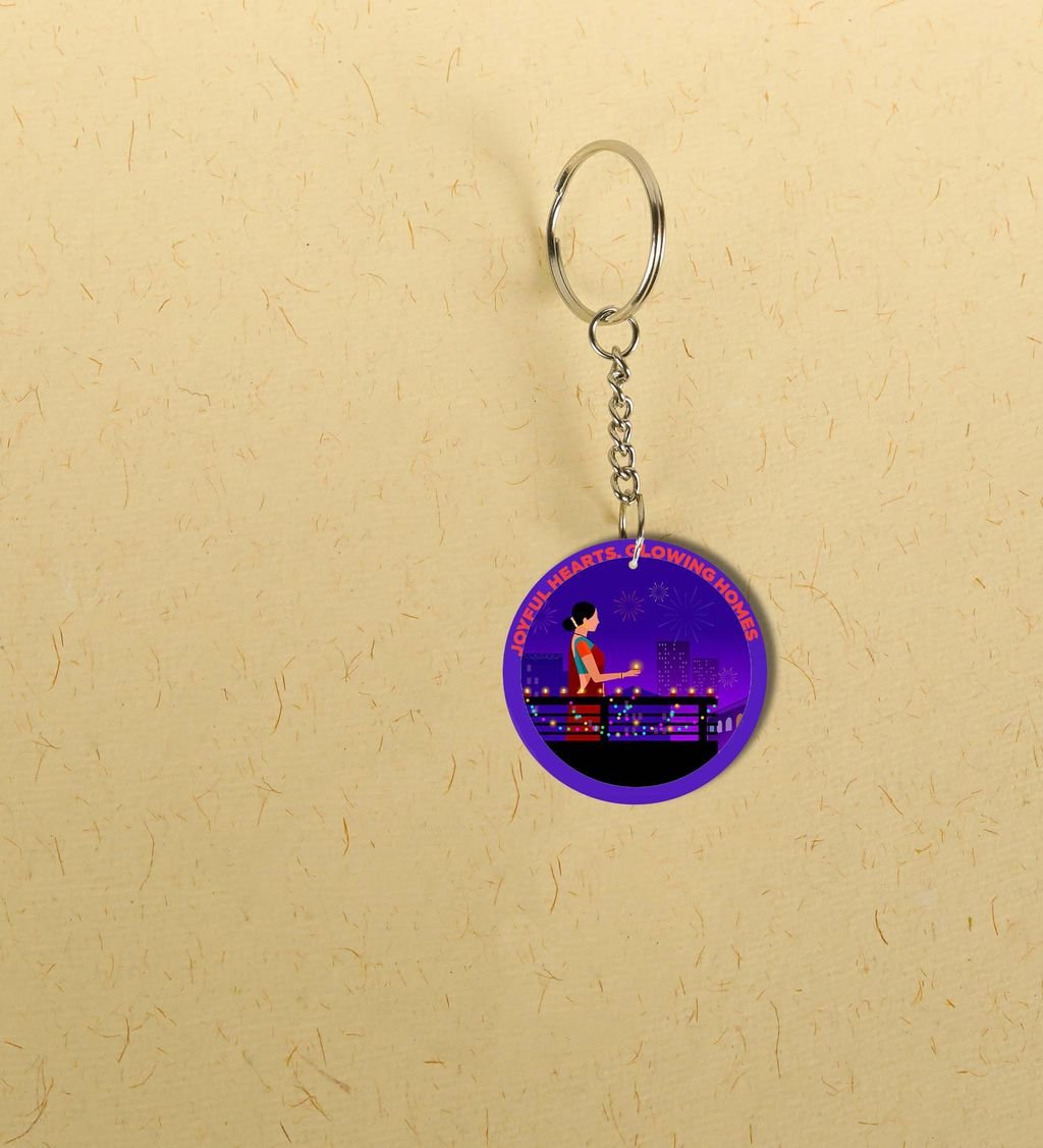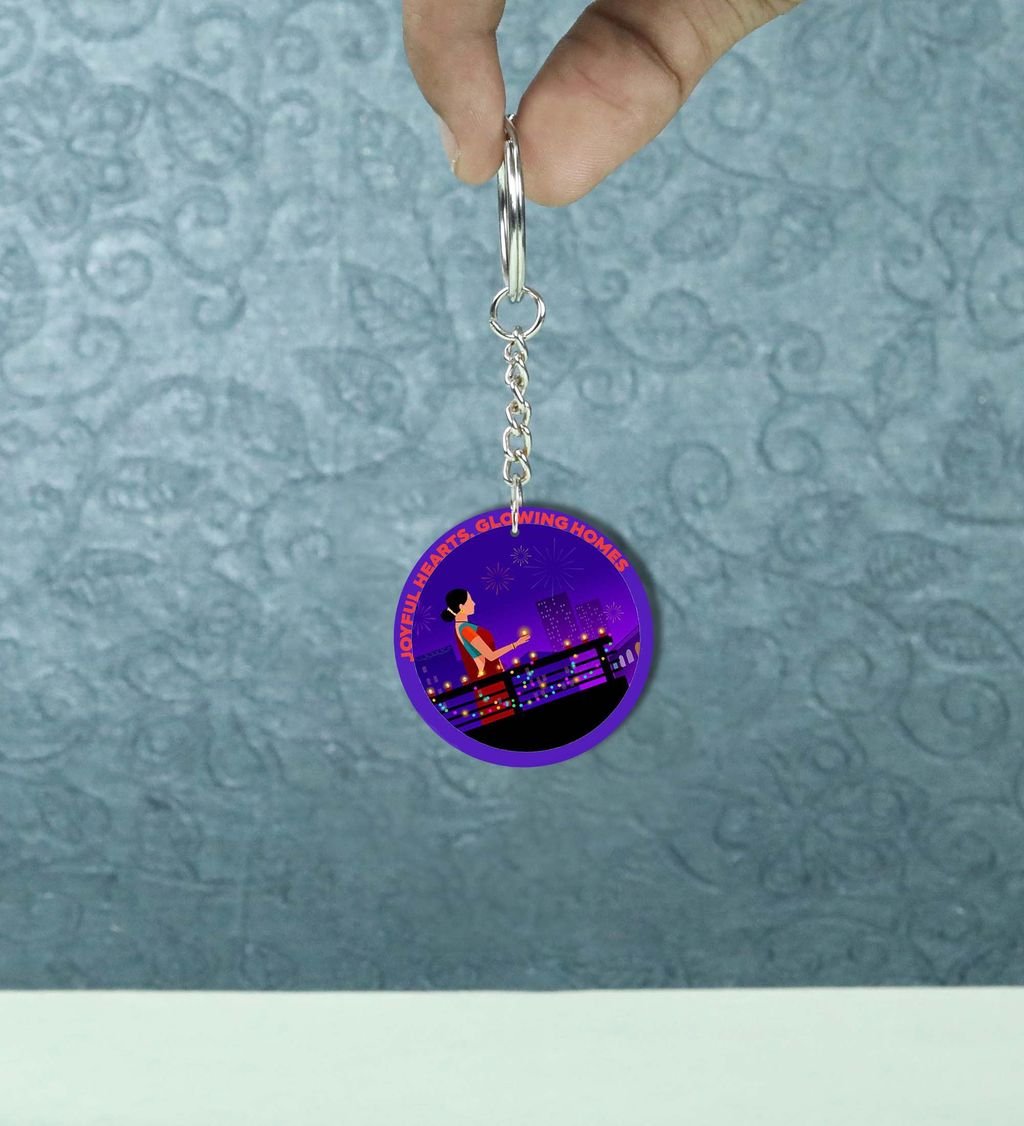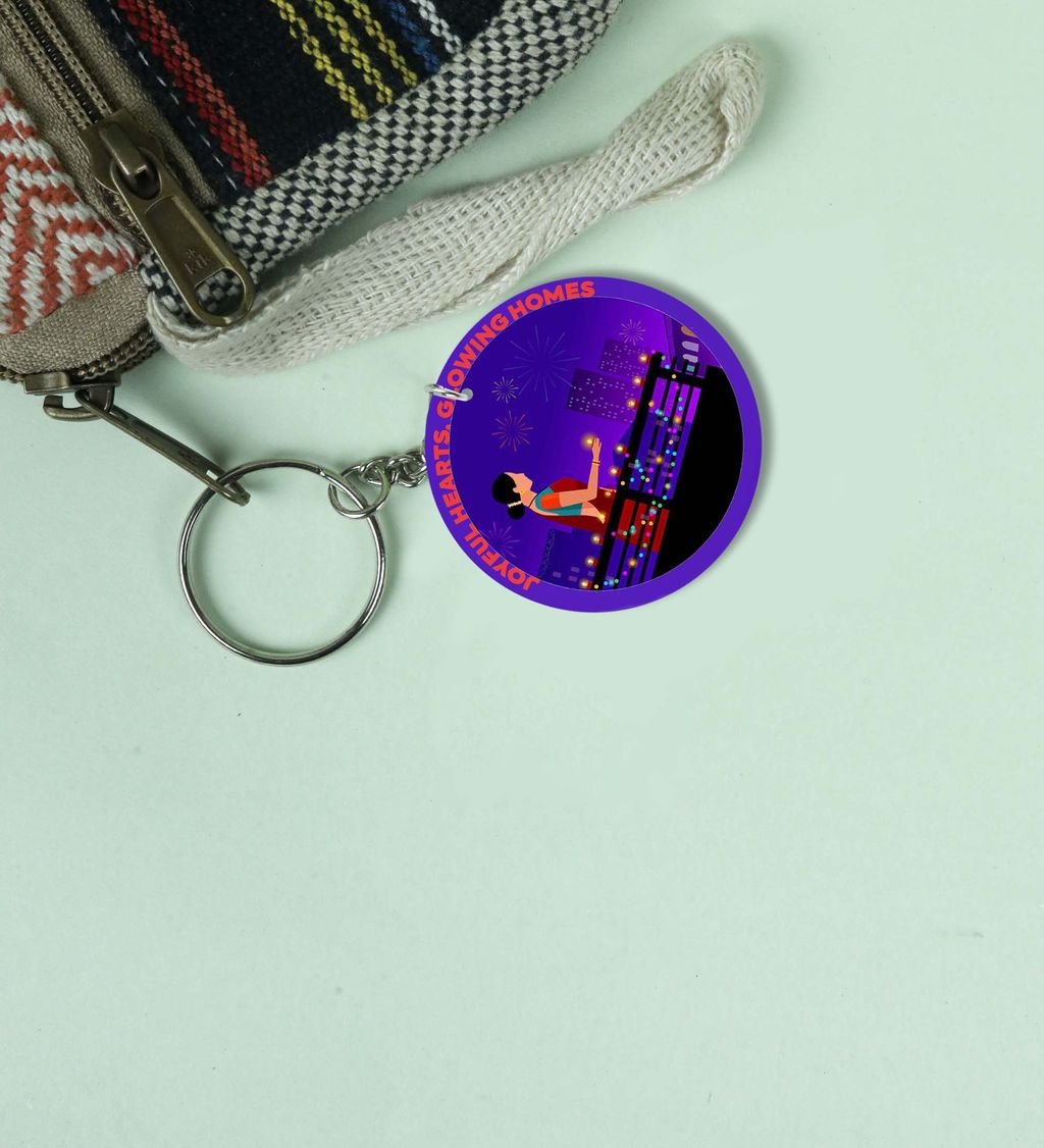 Joyful City Nights and Sparkling Lights Printed Round Keychain Pack of 2