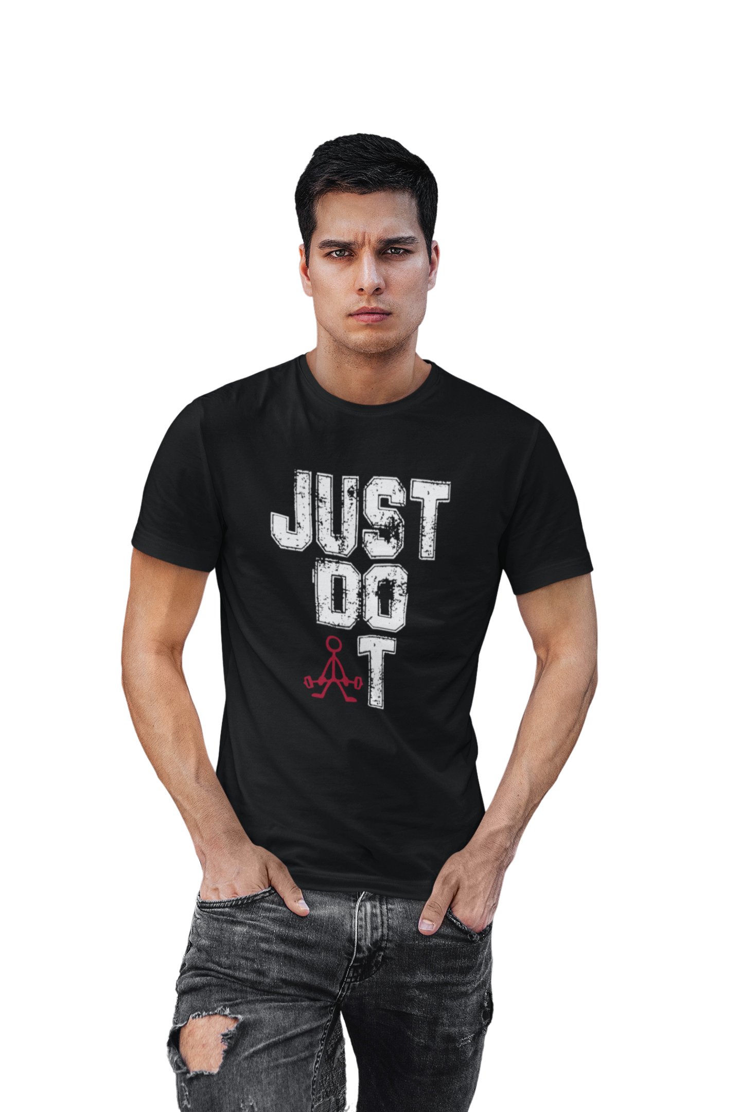 Just Do It, (BG White), Round Neck Gym Tshirt (Black Tshirt) - Clothes for Gym Lovers - Suitable for Gym Going Person - Foremost Gifting Material for Your Friends and Close Ones