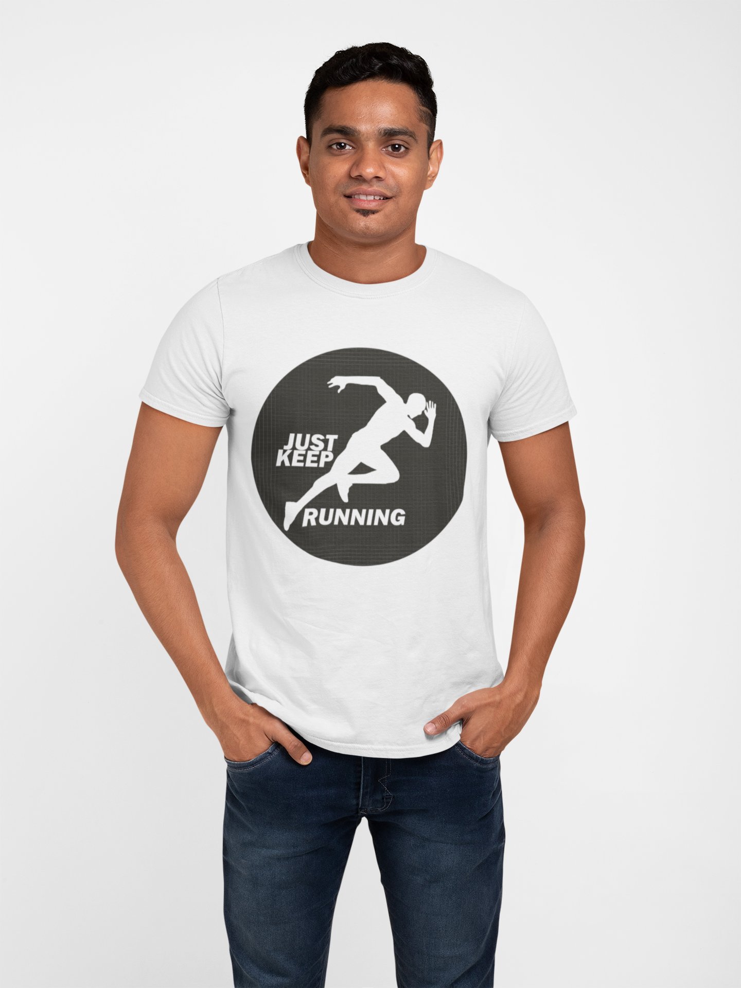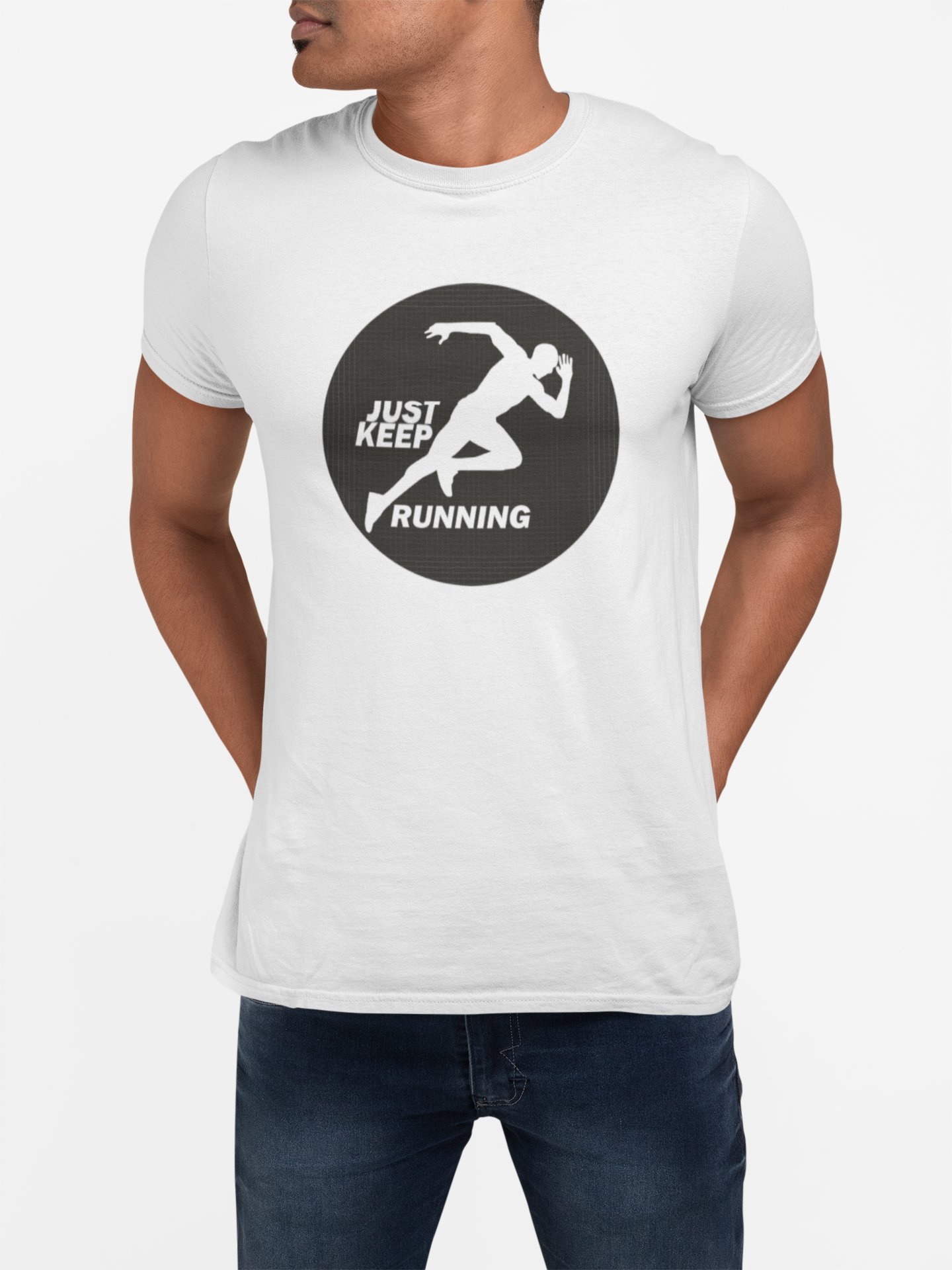 Just Keep Running - Black Round - White - Printed - Sports cool Men's T-shirt