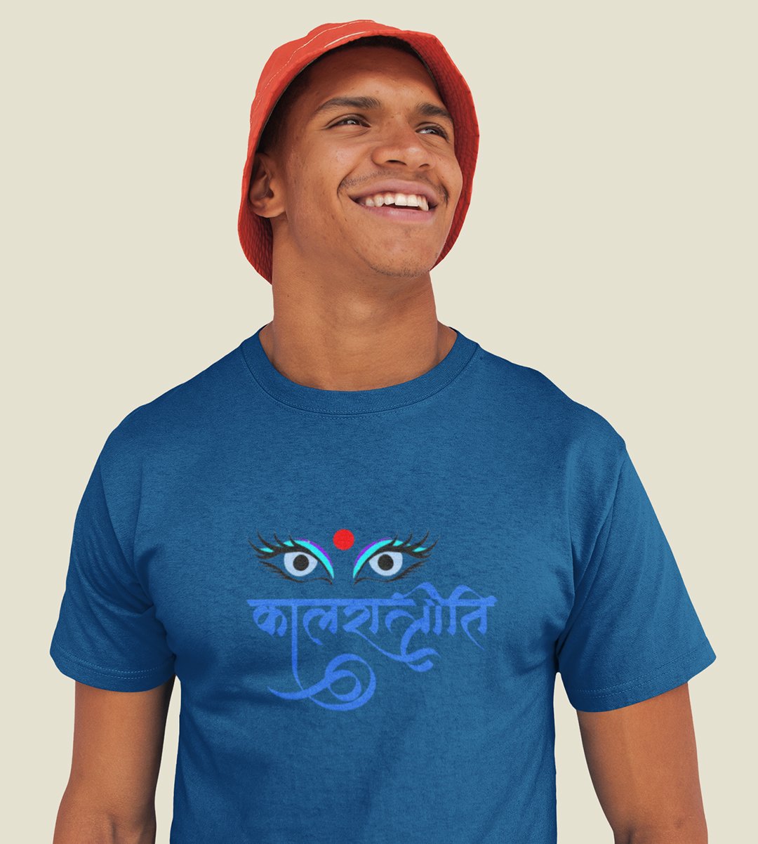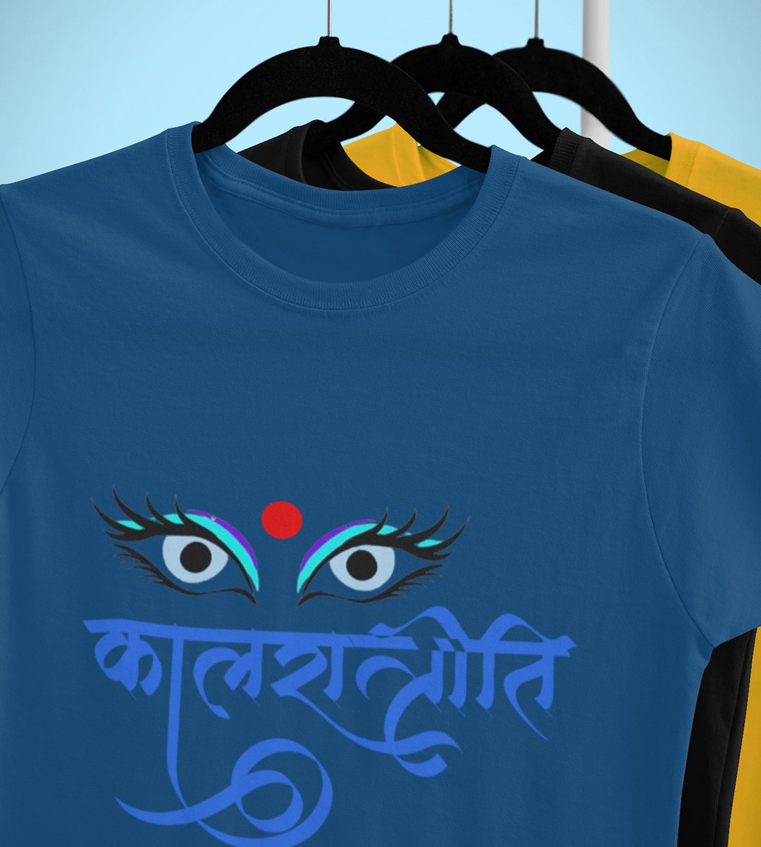 Kaalratrini printed unisex adults round neck cotton half-sleeve blue tshirt specially for Navratri festival/ Durga puja