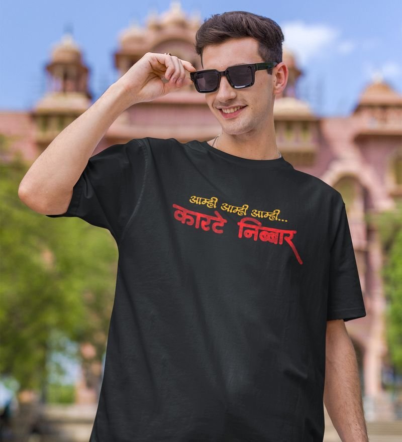 Kaarte Nibbar Black Round Neck Cotton Half Sleeved Men T Shirt with Printed Graphics