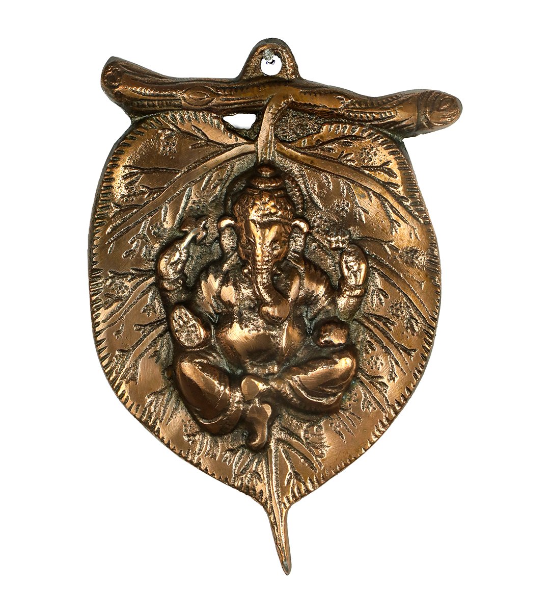 Kamalasana Ganesha Wall Hanging on leaf : Finely engraved wall hanging of lord ganesha which will look fantastic on your wall