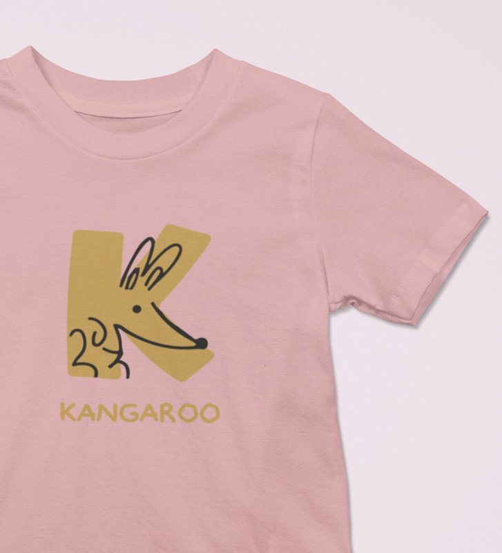 Kangaroo, Printed Cotton Tshirt (Baby pink) for Boys