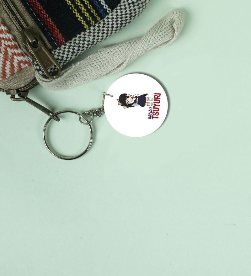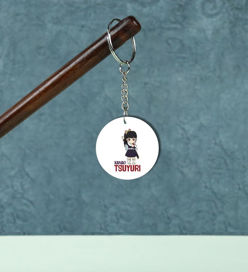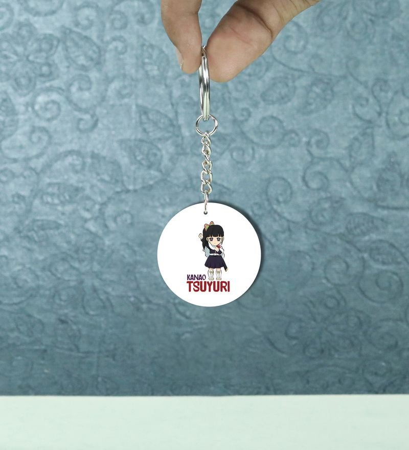 Kawaii Style Girl Character Printed Round Keychain Pack of 2