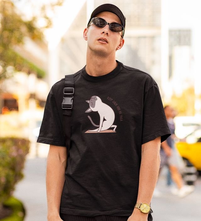 Keep Calm And Do Yoga Black Round Neck Cotton Half Sleeved Men T-Shirt with Printed Graphics