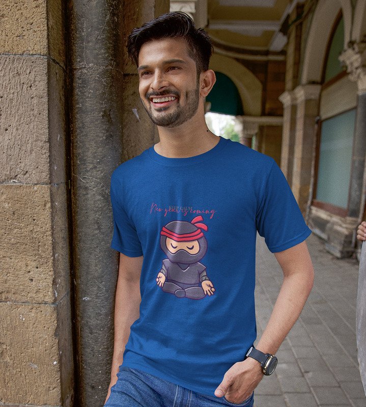 Keep Calm Blue New Year Printed T-shirt For Mens