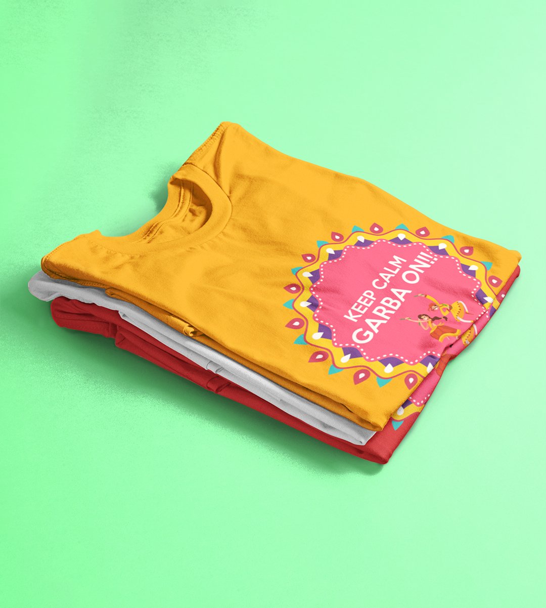 Navratri is a very auspicious festival for hindus. It takes place at the beginning of October and sometimes September. Enjoy the 9 days of festivities with full zeal and make yourself submerged in the love of Maa Durga. Navratri is also known as Durga Puja. And with this Tees, you can shine like a star during this festive season with our navratri themed cotton half sleeved Tshirts. You can pair our t-shirts with trousers and denim of your choice and make it a weekday smart casual or weekend wear. This is durable. This tshirt is smooth and soft which makes you comfortable to wear during all seasons. The printing in it is durable and odourless. It has five sizes, S,M,L,XL,XXL. The Tshirt colour is intact even after repeated washes. It can be kept in your wardrobe and hangers. Please avoid washing mashine to clean this Tee, it may affect the print. Hand wash only. We have brought you many navratri related designs printed on our different colour Tshirts to choose from. Grab it now.