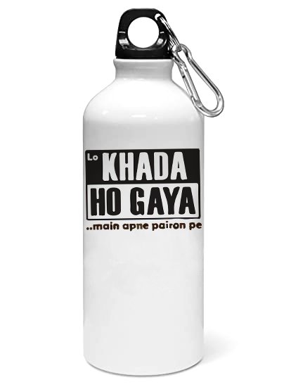 Khada ho gaya main apne pairon pe printed dialouge Sipper bottle - Aluminium water bottle - for college students - for daily use - perfect for camping