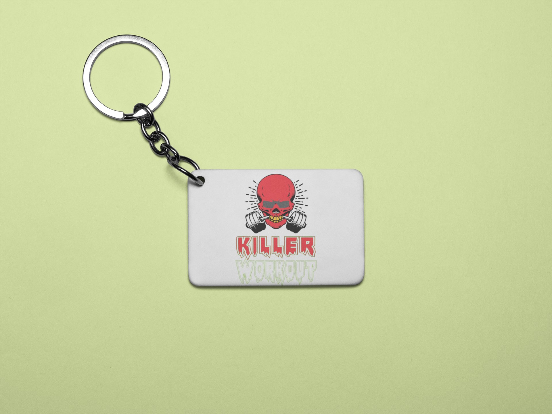 Killer Workout, (BG Red and White) - Printed Keychains for gym lovers(Pack of 2)