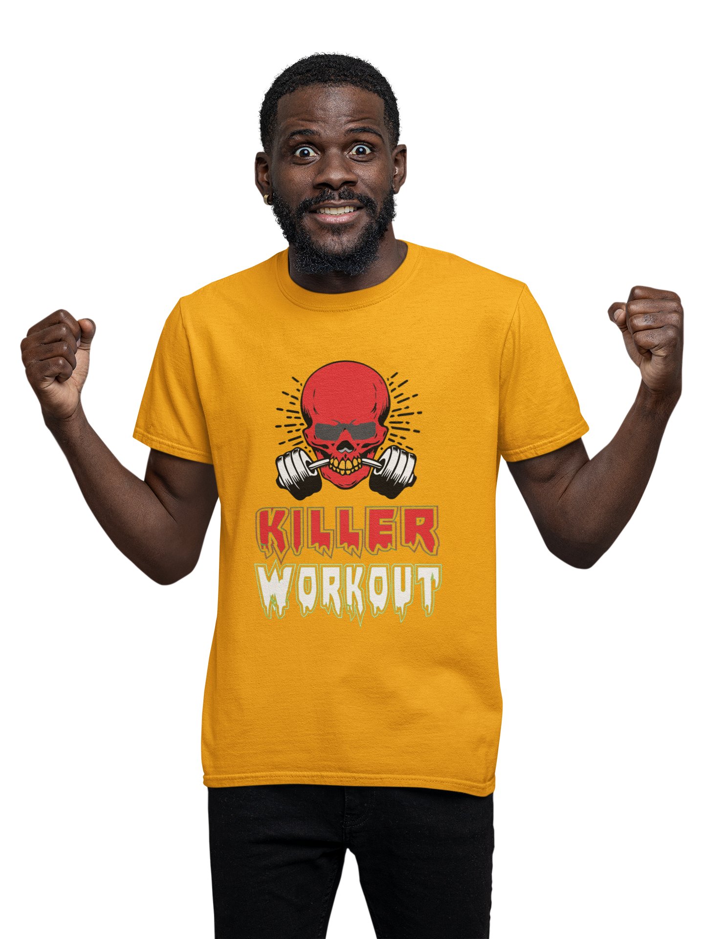 Killer Workout, Round Neck Gym Tshirt (Yellow Tshirt) - Clothes for Gym Lovers - Suitable for Gym Going Person - Foremost Gifting Material for Your Friends and Close Ones