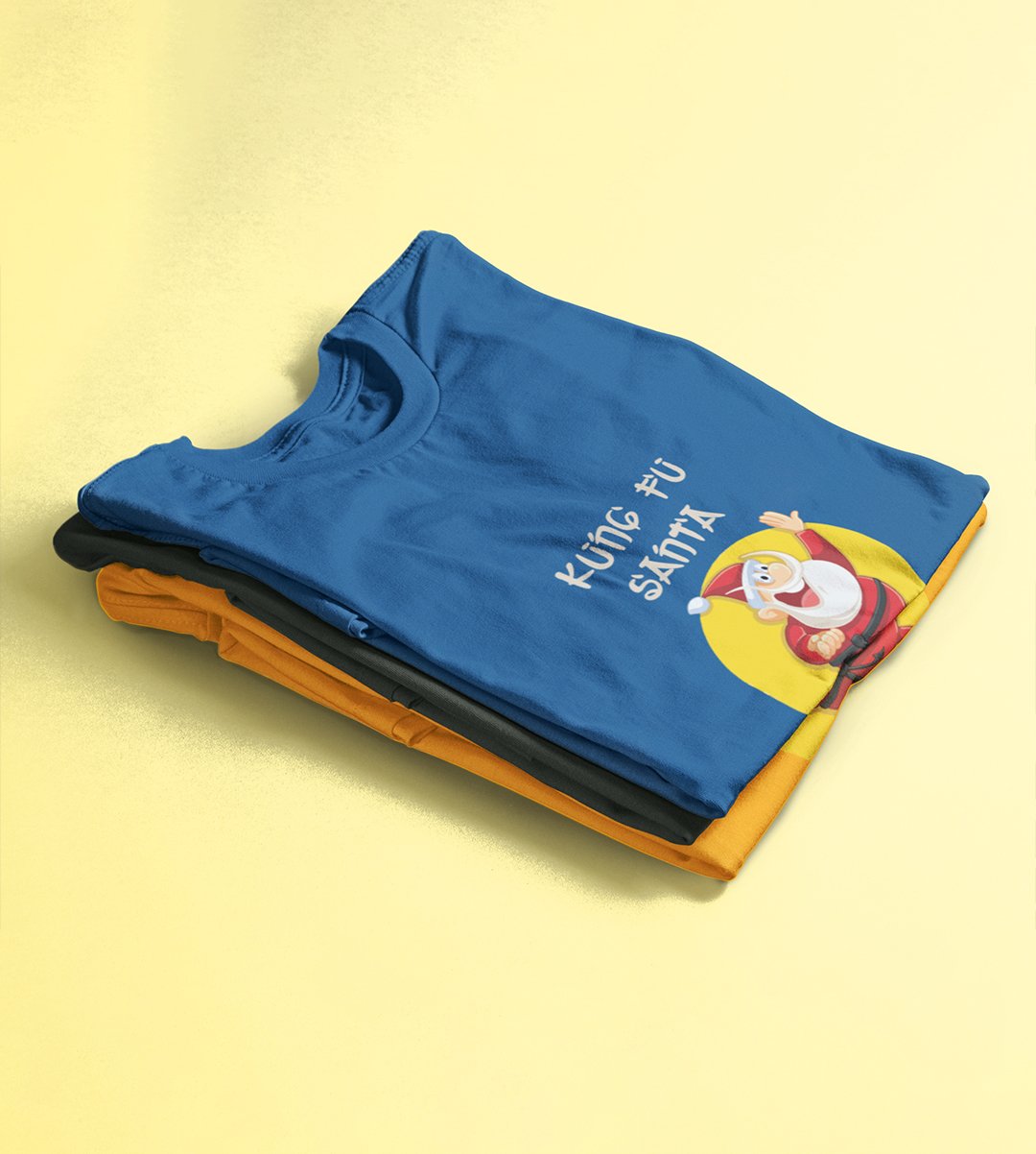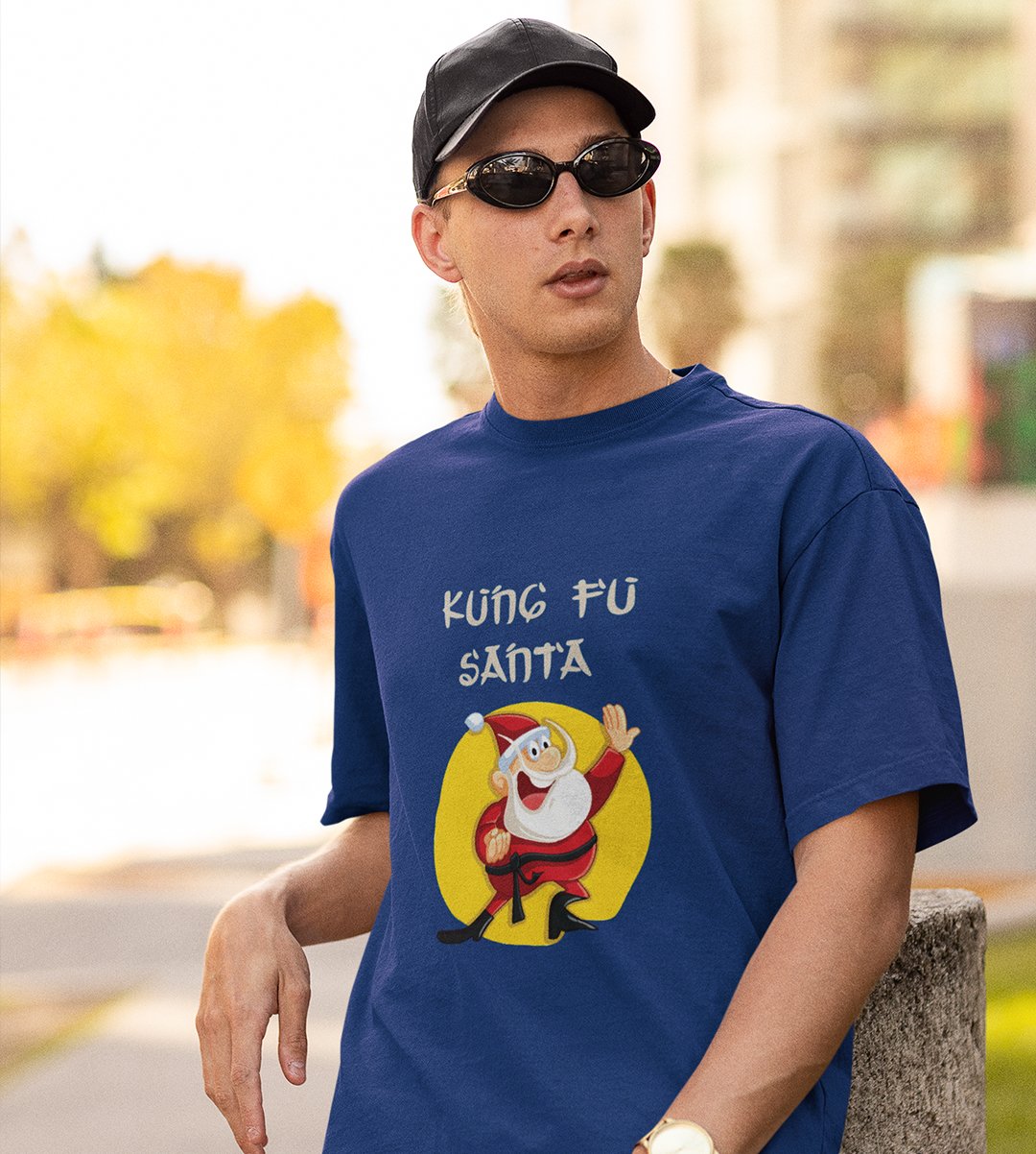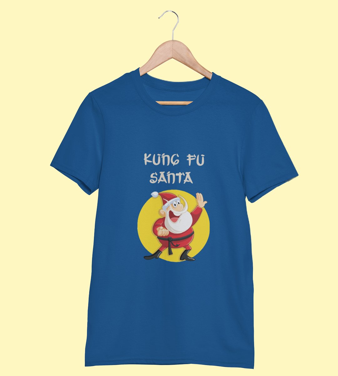 Kung Fu Santa: Perfect T-shirt For Secret Santa(Blue) Best Gift For Boys Girls