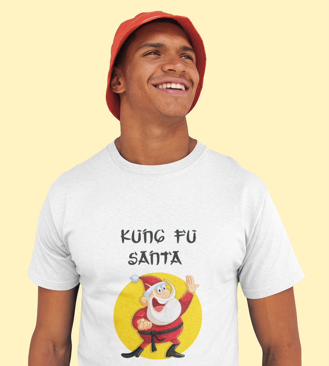 Kung Fu Santa: Perfect T-shirt For Secret Santa(White) Best Gift For Boys Girls