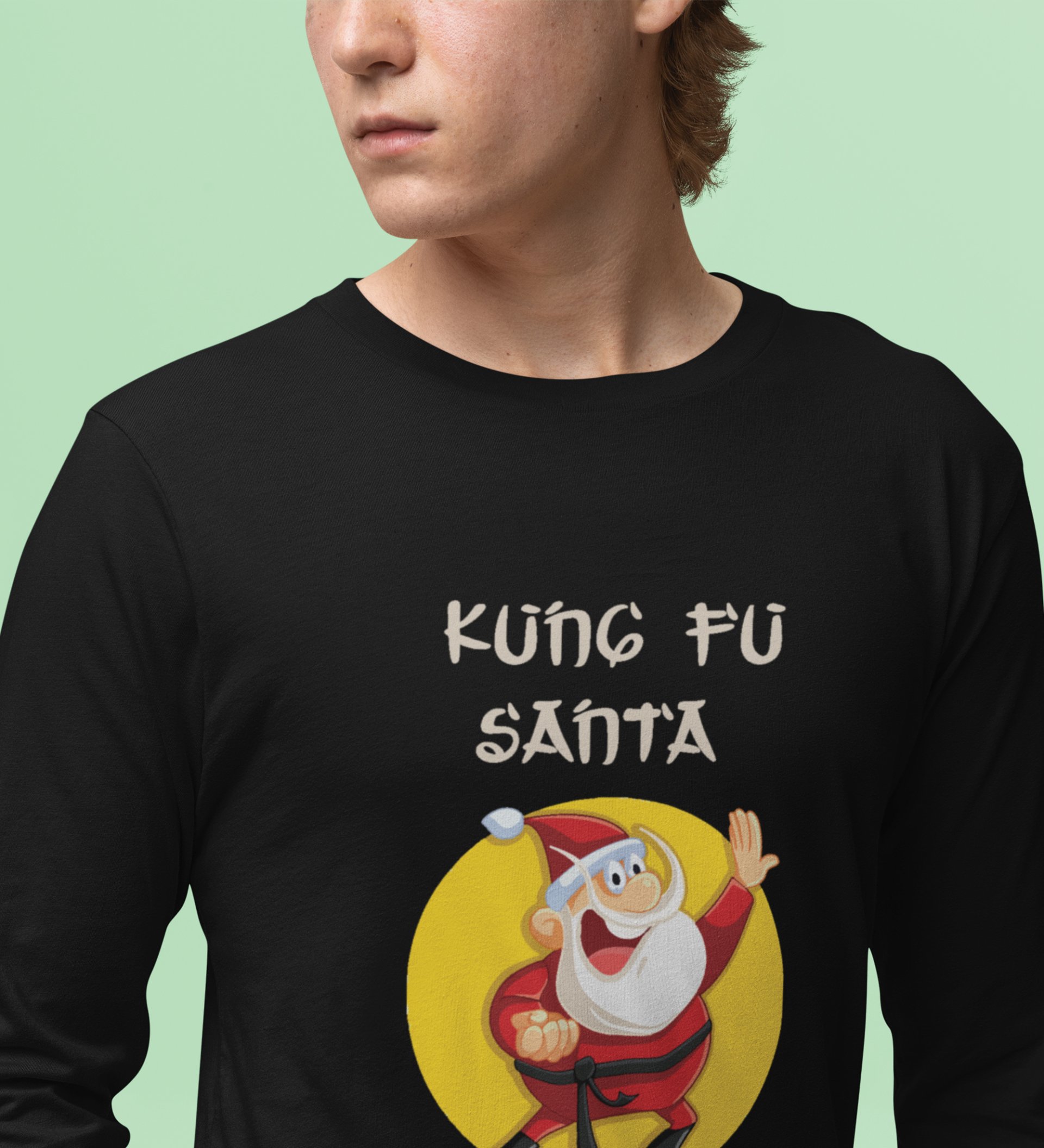 Kung Fu Santa: PerfectFull Sleeve T-shirt For Secret SantaBlack Best Gift For Boys Girls