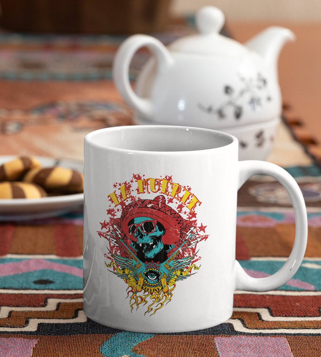 La Muerte, Blue skull - animation themed printed ceramic white coffee and tea mugs/ cups for animation lovers