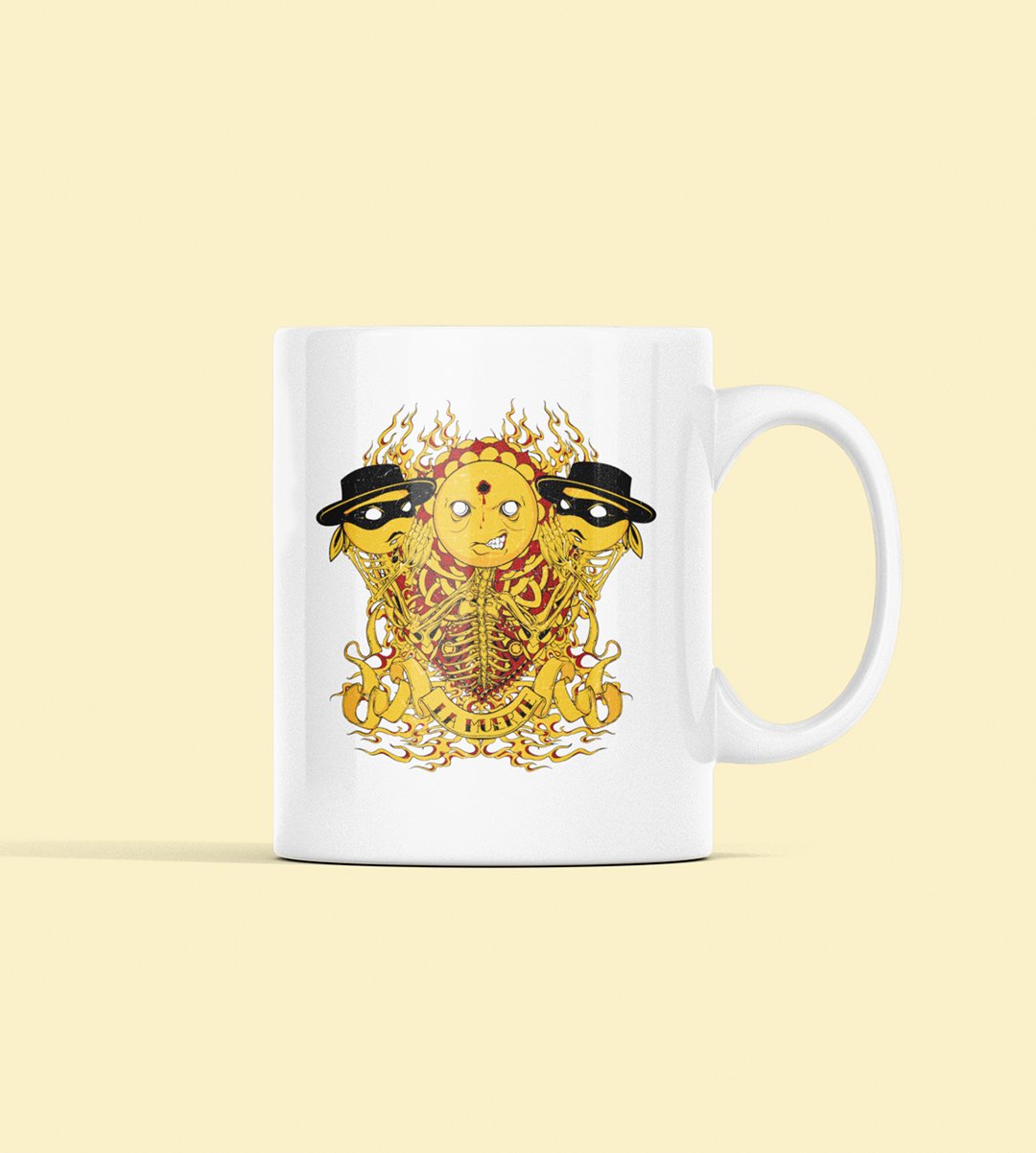 La Muerte, (yellow devil) - animation themed printed ceramic white coffee and tea mugs/ cups for animation lovers