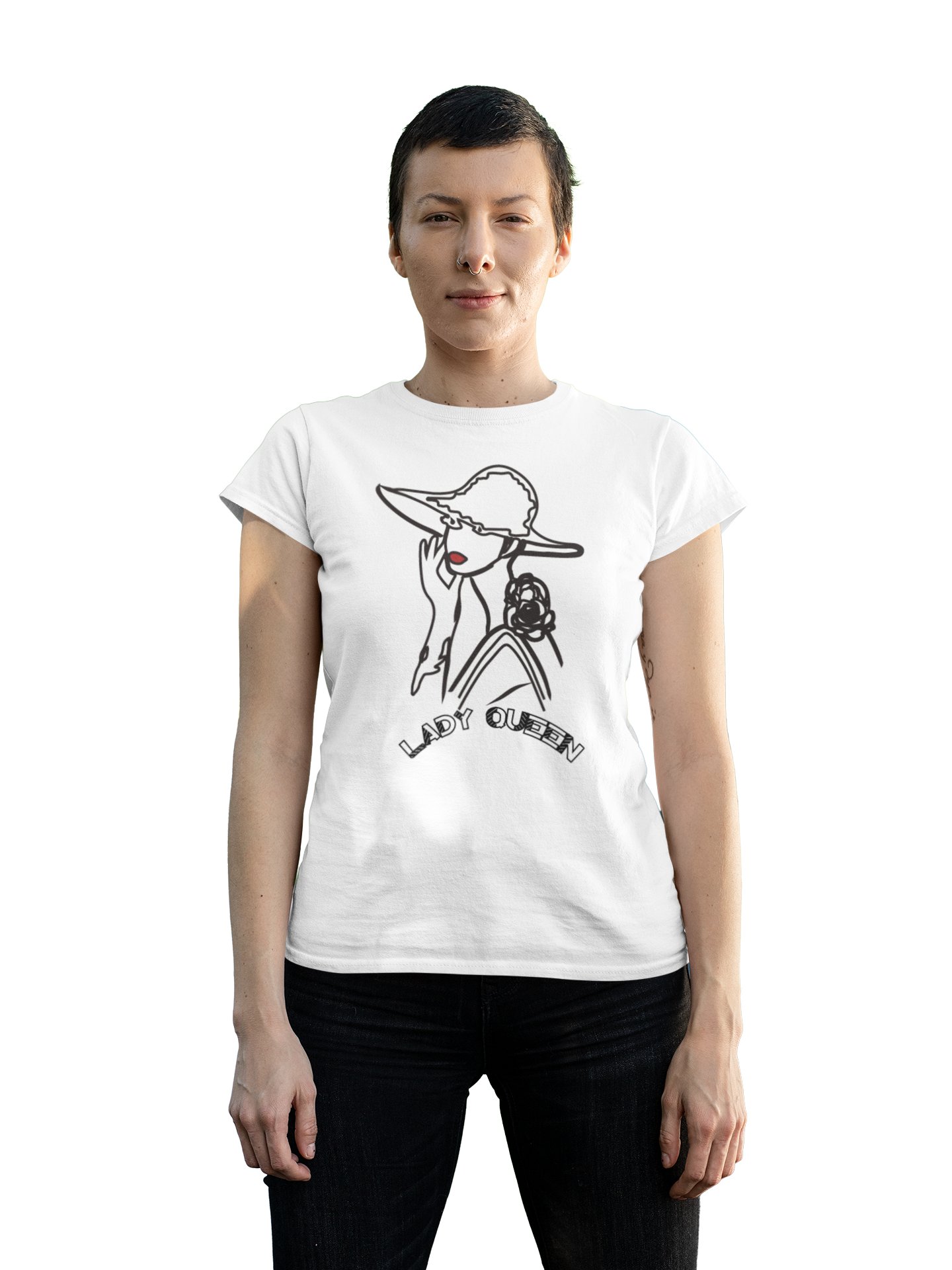 Lady Queen - Line Art for Female - Half Sleeves T-shirt