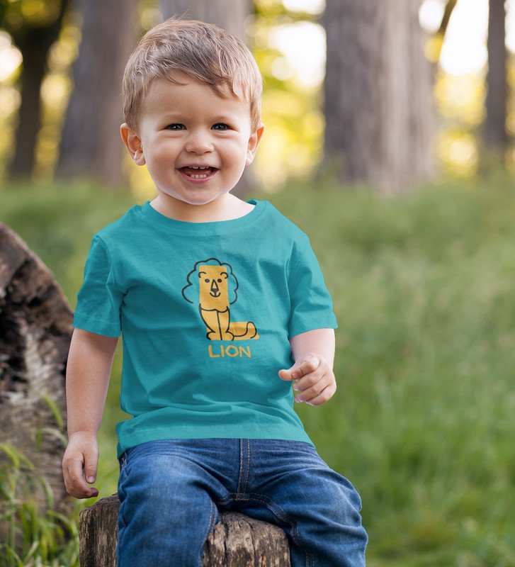 Lazy Lion, Boys Printed Crew Neck tshirt (teal)