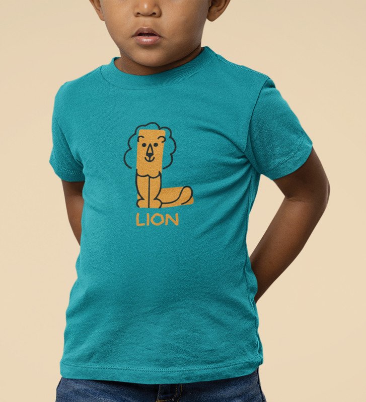 Lazy Lion, Boys Printed Crew Neck Tshirt (Teal)