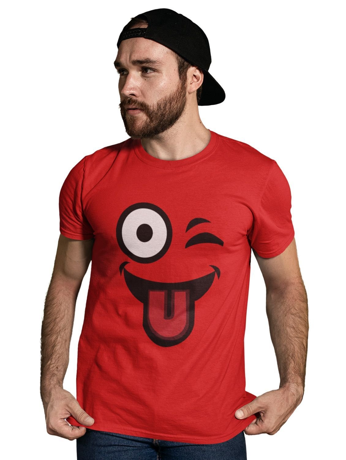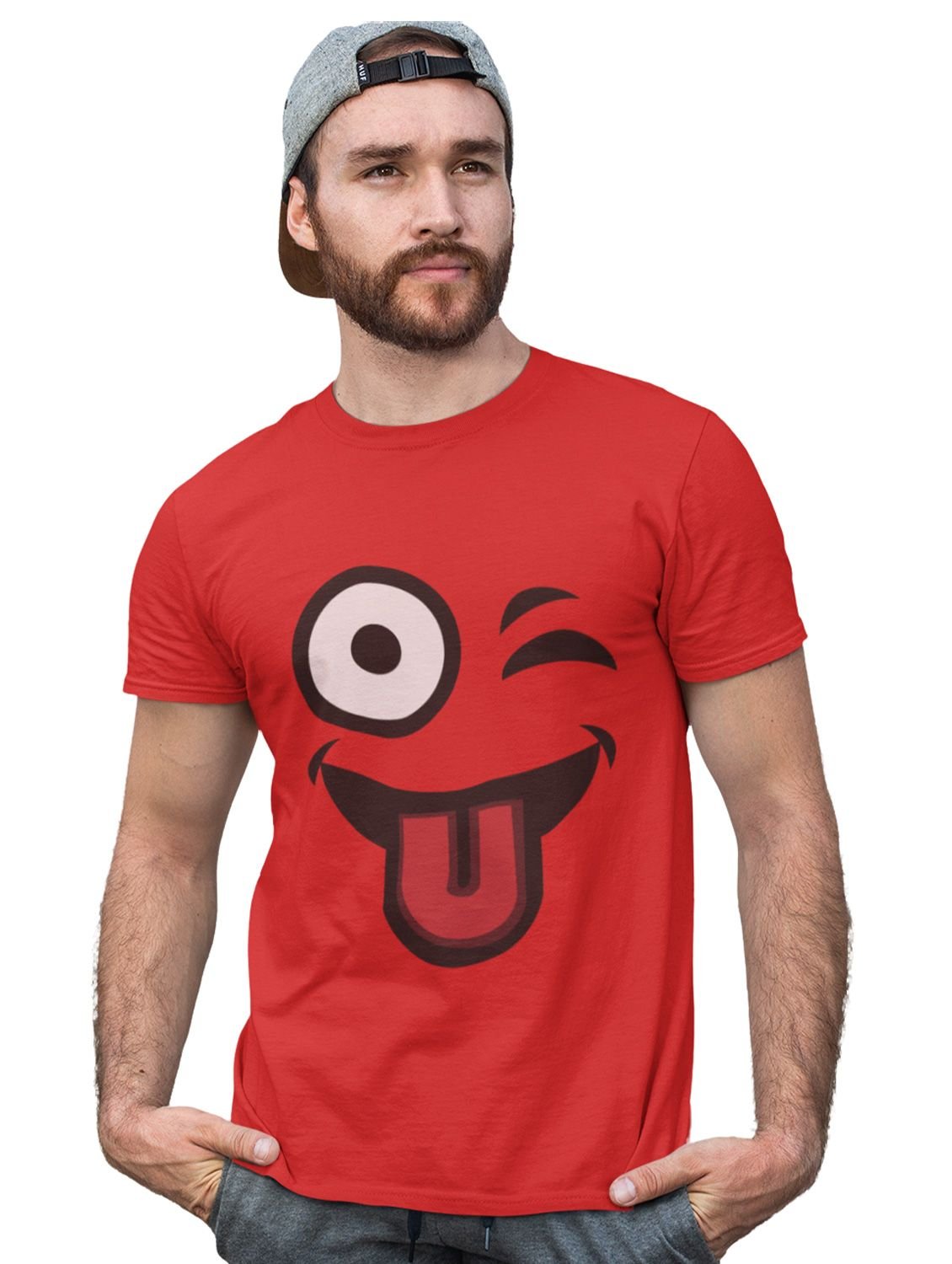 Left Eye Blink Emoji T-shirt (Red) - Clothes for Emoji Lovers - Foremost Gifting Material for Your Friends and Close Ones