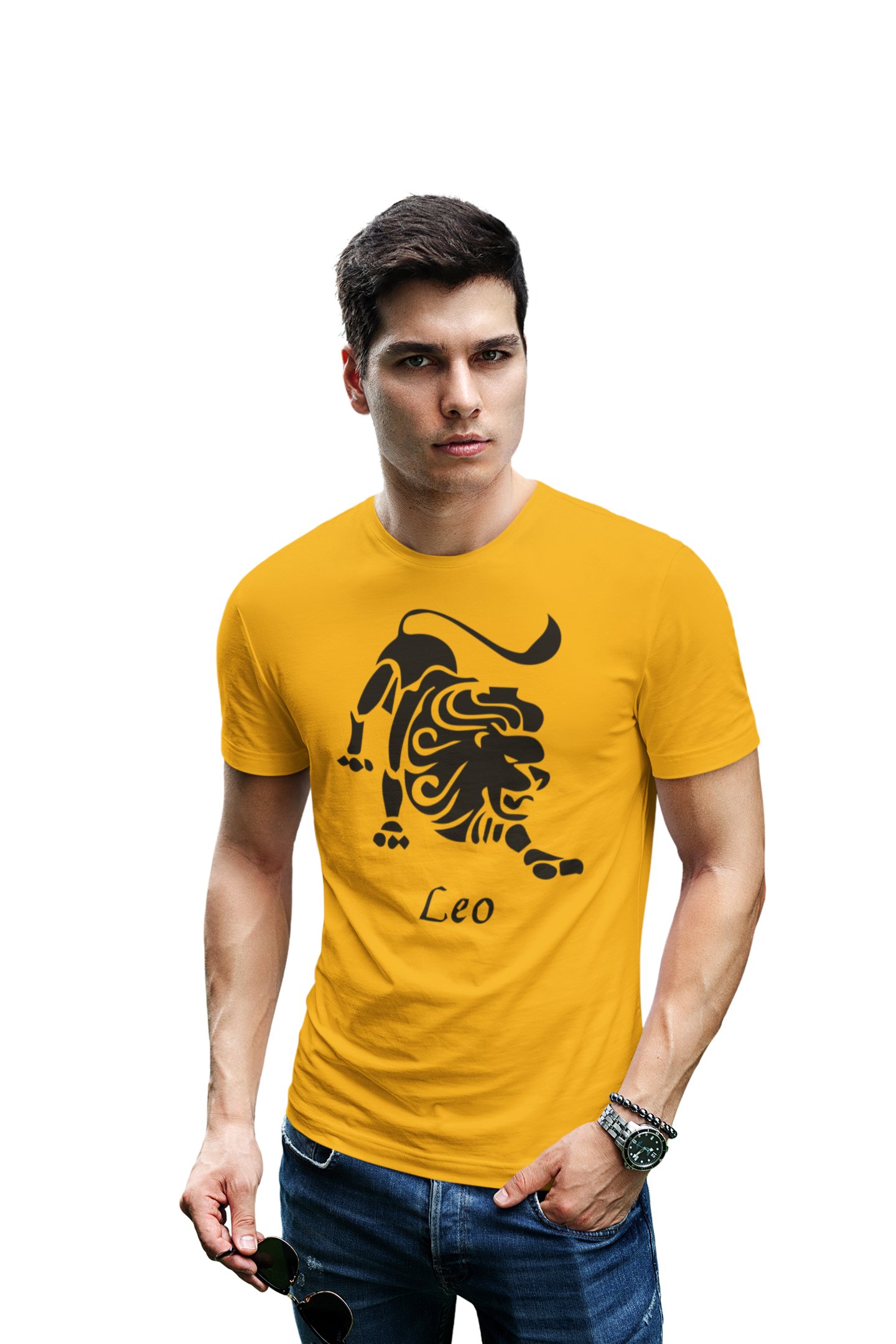 Leo (BG Black) (Yellow T) - Printed Zodiac Sign Tshirts - Made especially for astrology lovers people