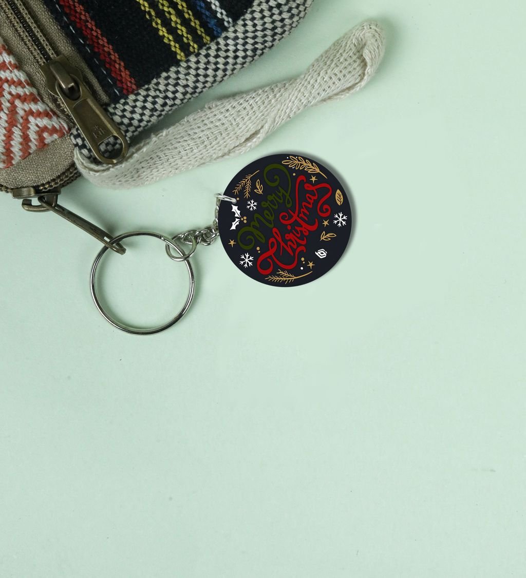 Let Every Moment Shine Bright with Christmas Printed Round Keychain Pack of 2