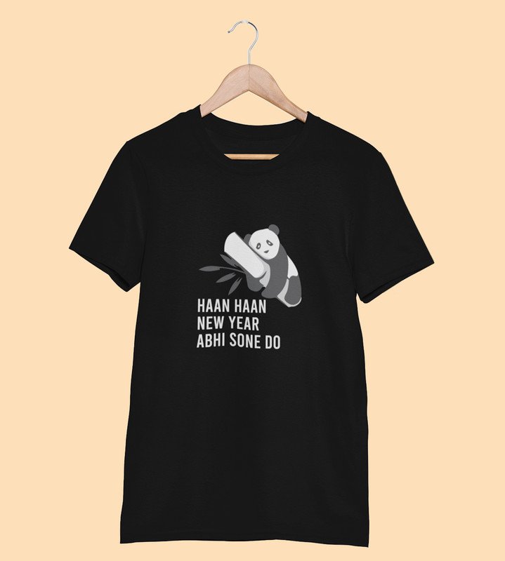Let Me Sleep Black New Year Printed T-shirt For Mens