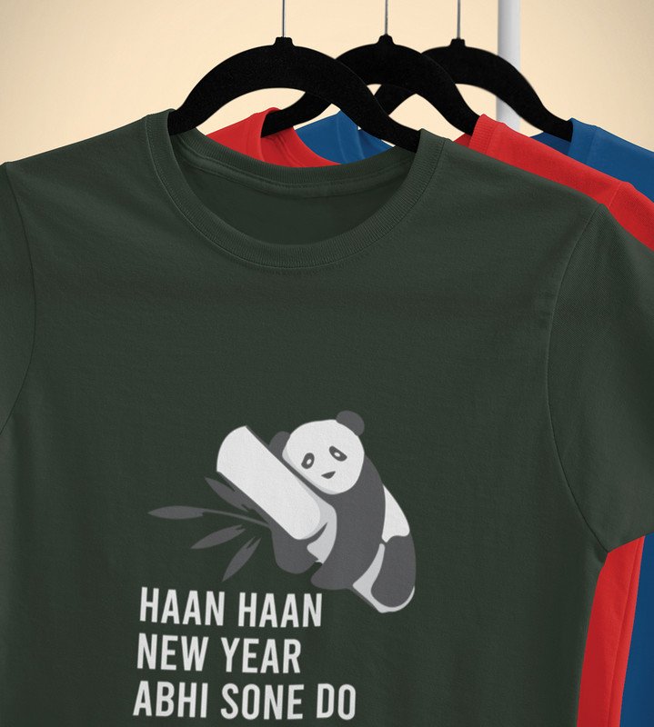 Let Me Sleep Green New Year Printed T-shirt For Mens