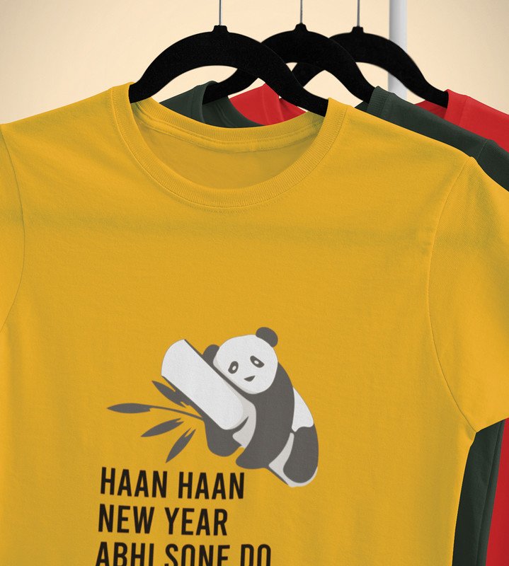 Let Me Sleep Yellow New Year Printed T-shirt For Mens