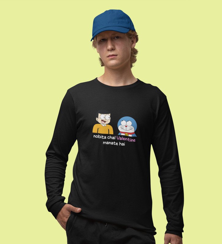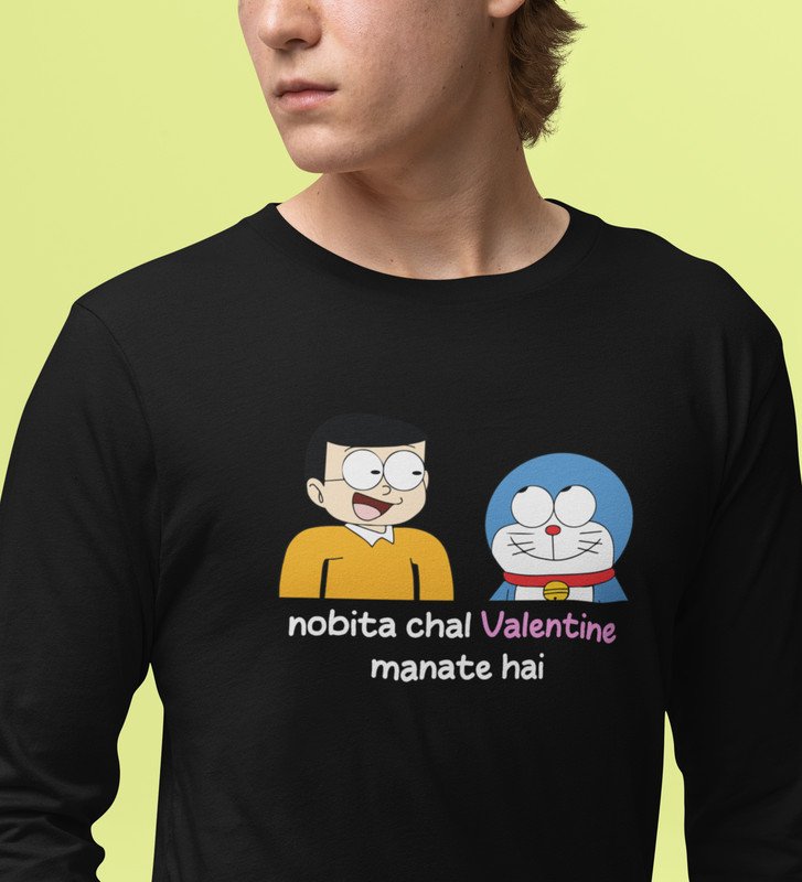 Let's Celebrate Valentine: Printed (black) Full Sleeve T-Shirt For Singles