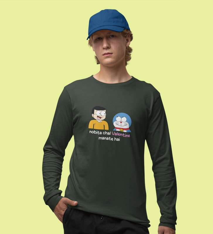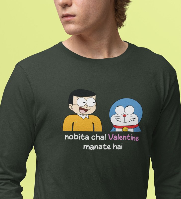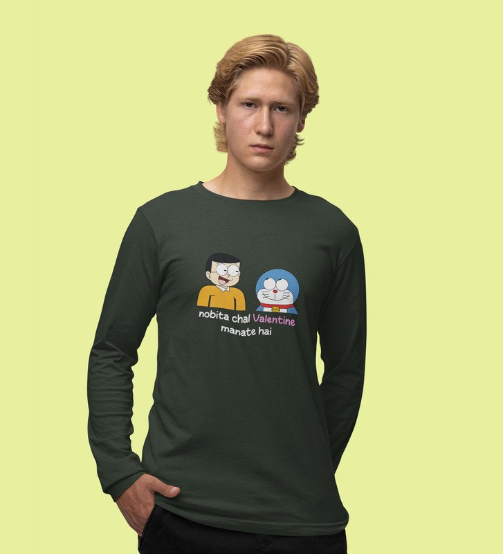 Let's Celebrate Valentine: Printed (green) Full Sleeve T-Shirt For Singles