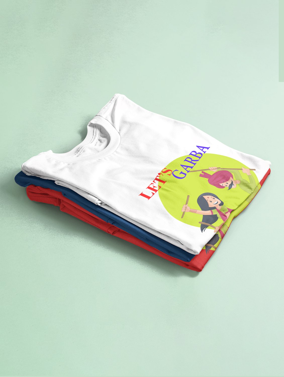 Lets garba (green) printed unisex adults round neck cotton half-sleeve blue tshirt specially for Navratri festival/ Durga puja