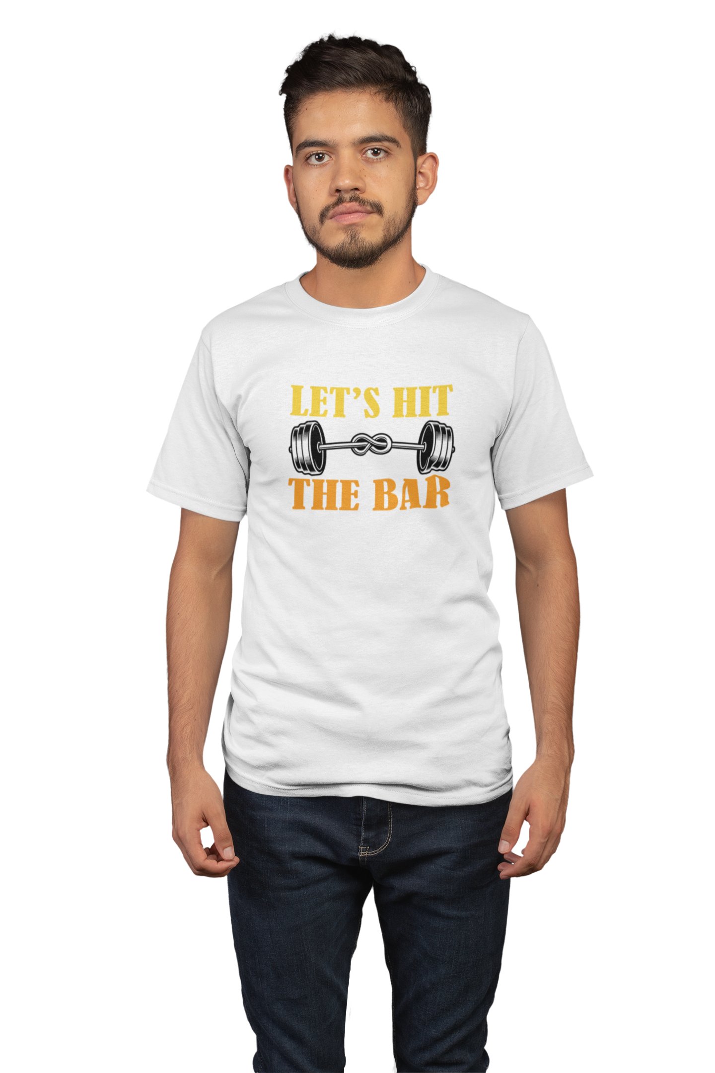 Let's Hit The Bar, Round Neck Gym Tshirt (White Tshirt) - Clothes for Gym Lovers - Suitable for Gym Going Person - Foremost Gifting Material for Your Friends and Close Ones