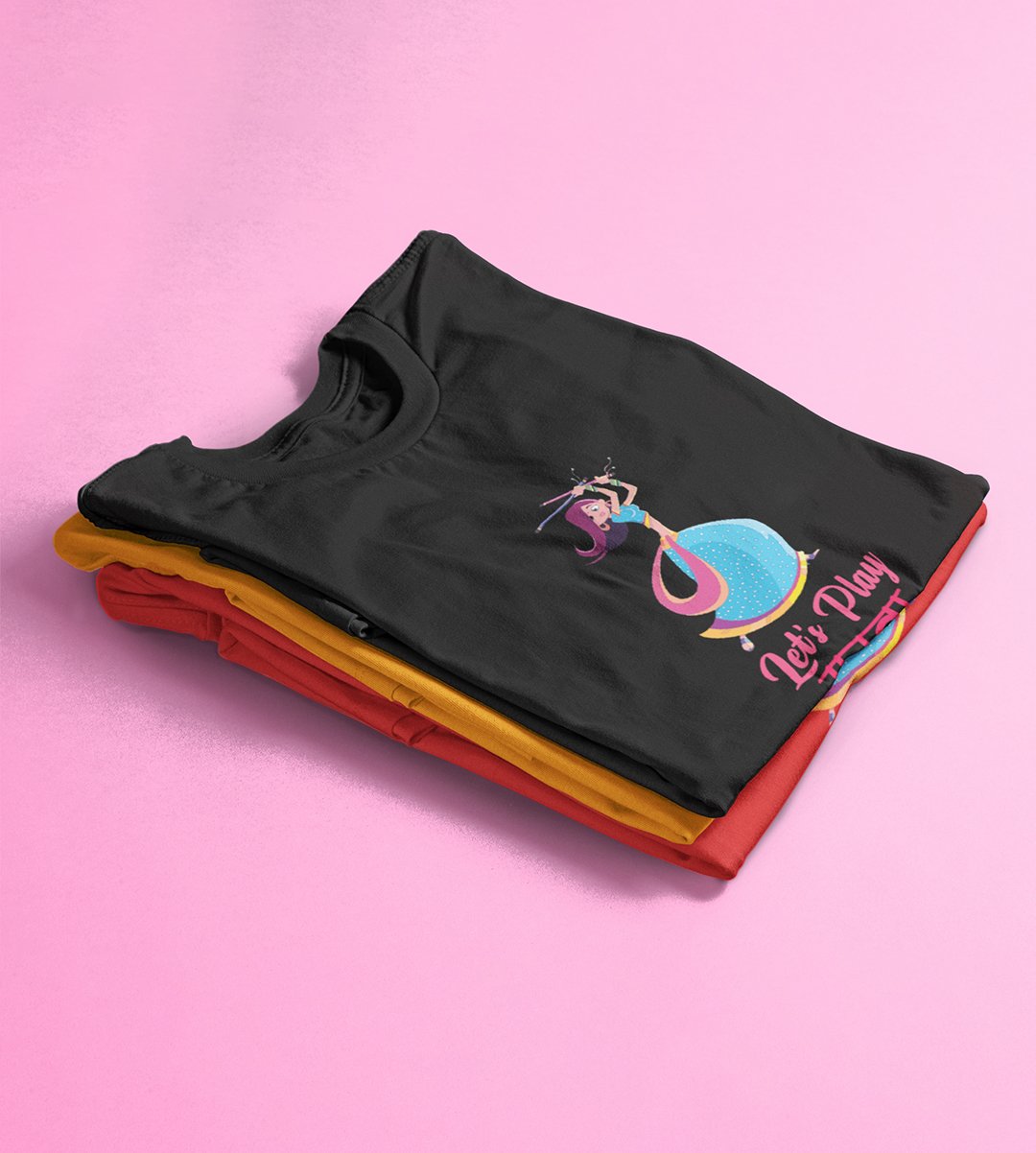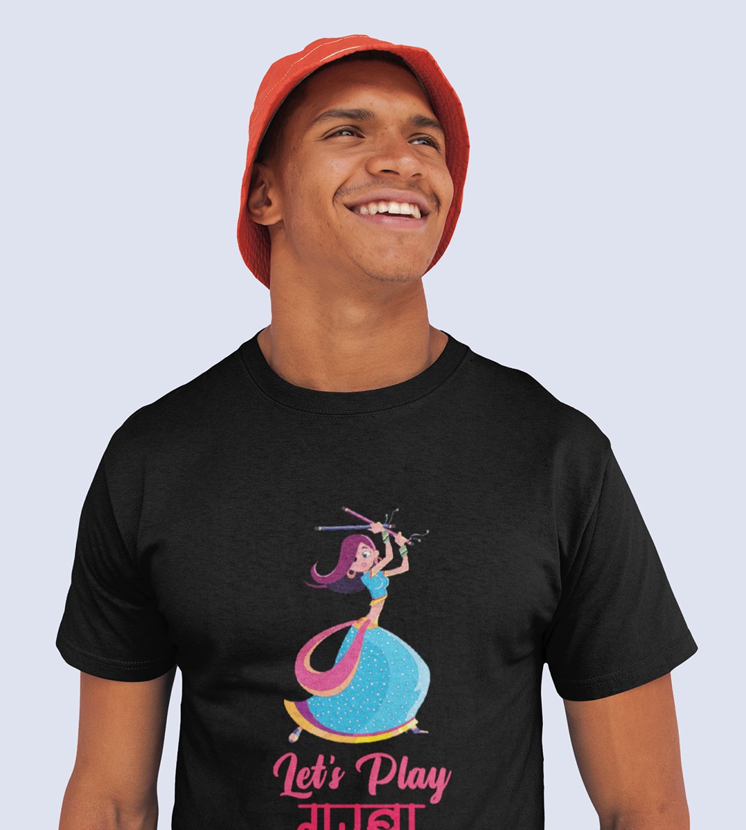 Lets play garba printed unisex adults round neck cotton half-sleeve black tshirt specially for Navratri festival/ Durga puja