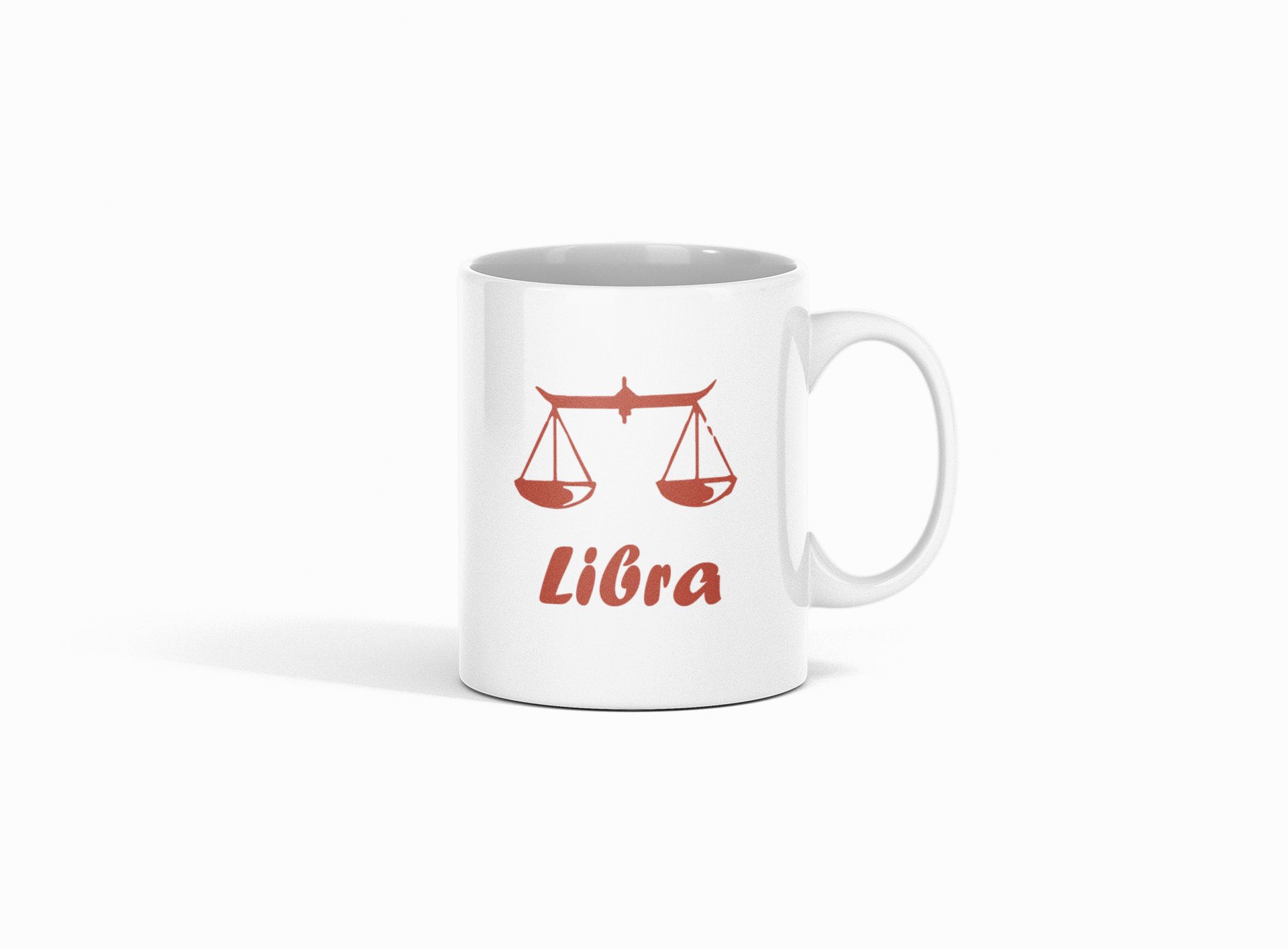 Libra (BG Brown) - zodiac themed printed ceramic white coffee and tea mugs/ cups for astrology lovers