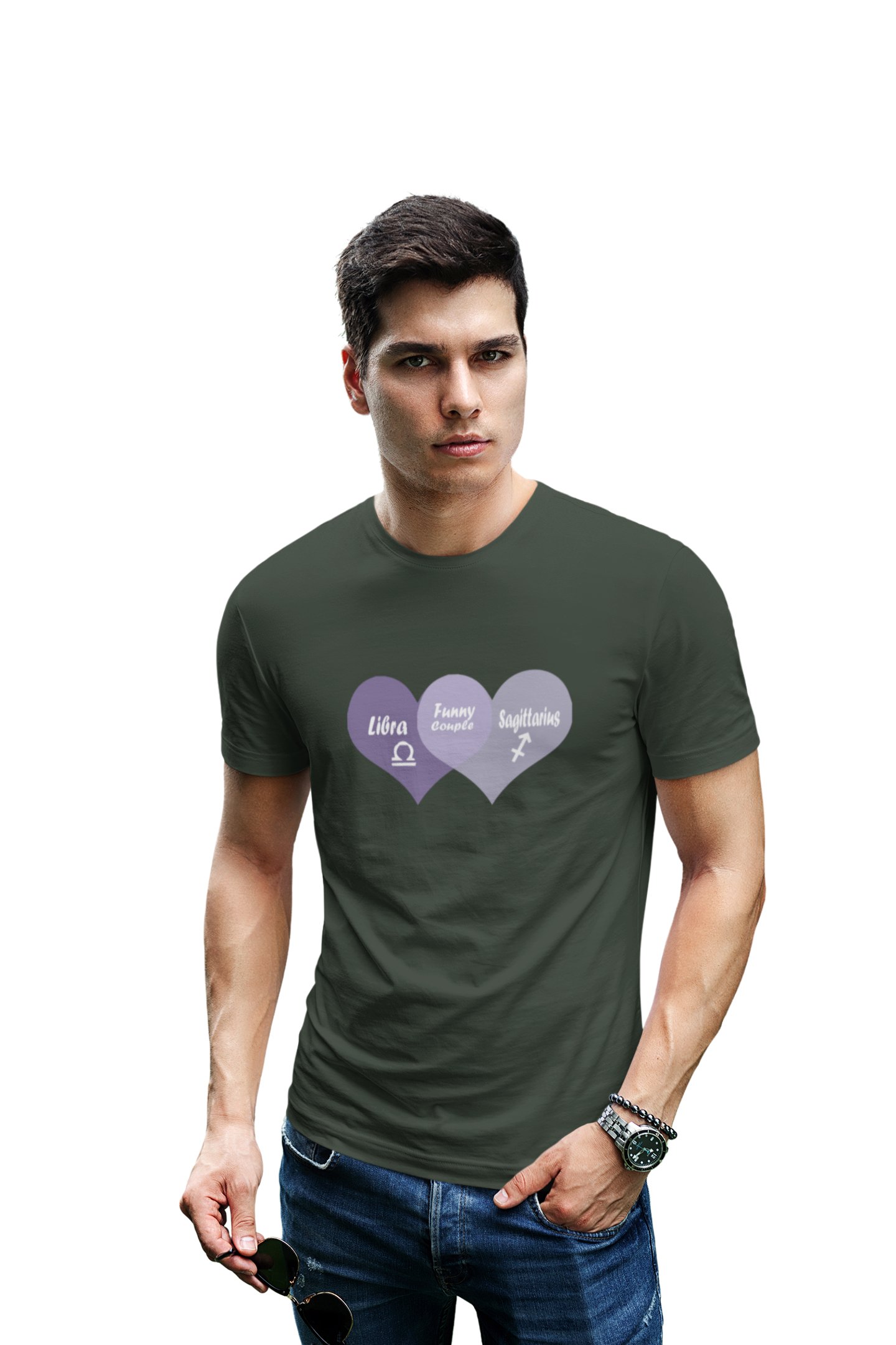 Libra, Sagittarius, funny couple (Green T) - Printed Zodiac Sign Tshirts - Made especially for astrology lovers people
