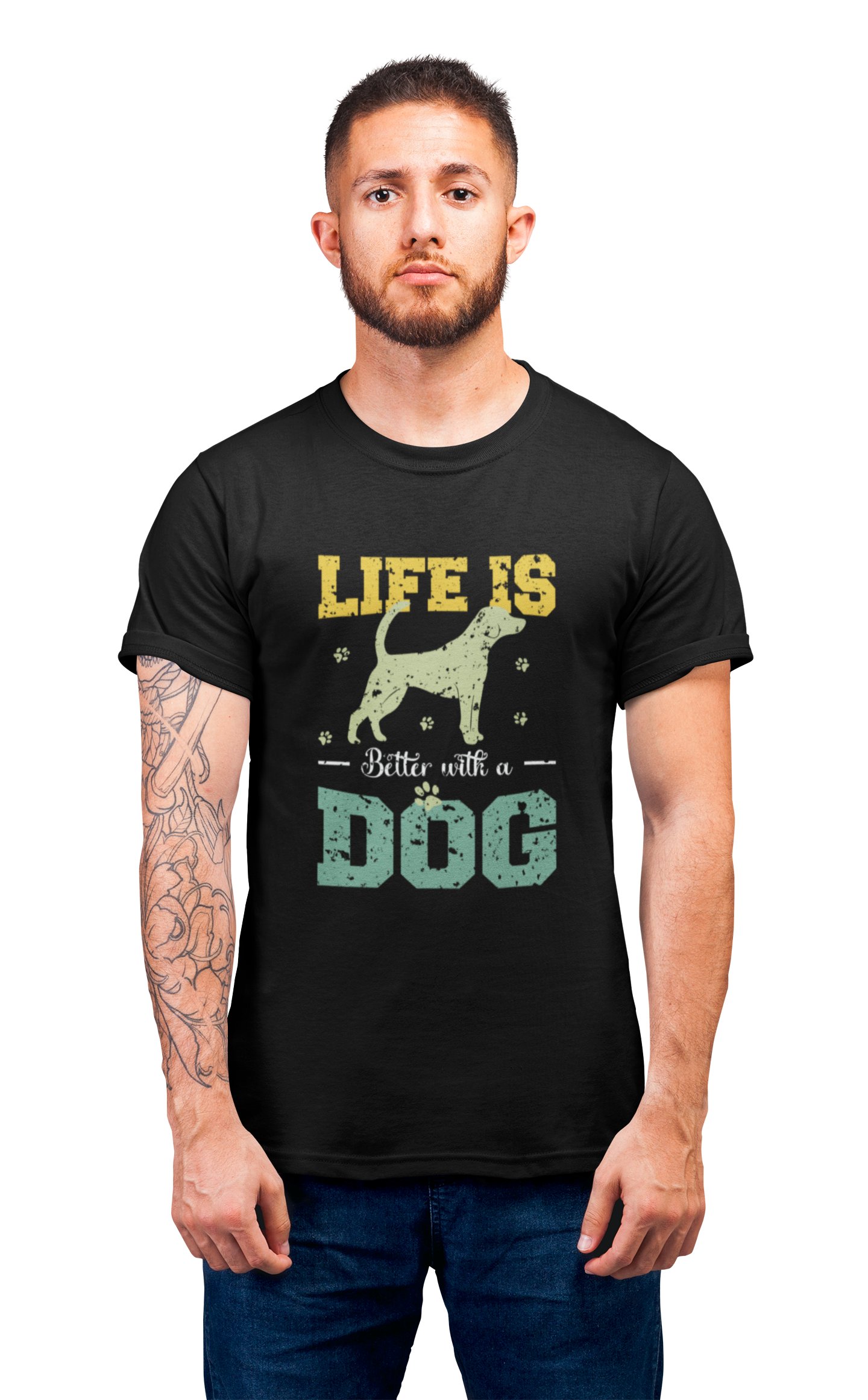 Life is better with a dog - printed stylish Black cotton tshirt- tshirts for men