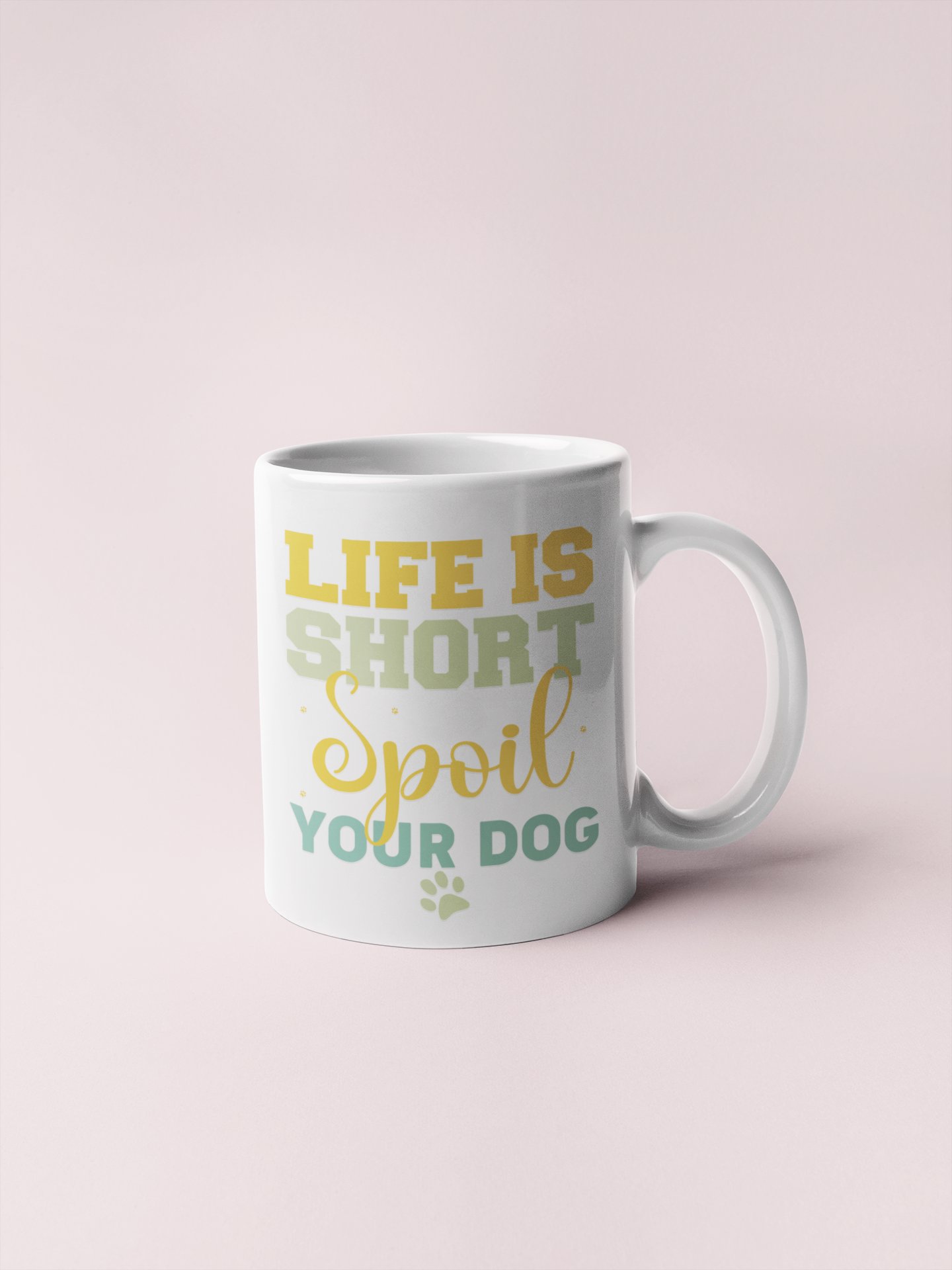 Life is short spoil your dog- pets themed printed ceramic white coffee and tea mugs/ cups for pets lover people