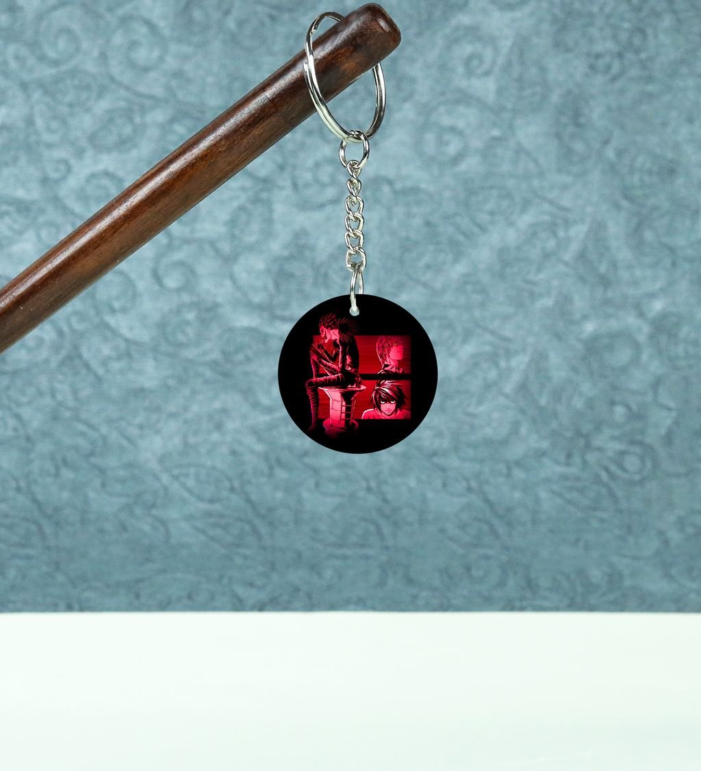 Light L and Ryuk Showdown Anime Printed Round Keychains Pack of 2