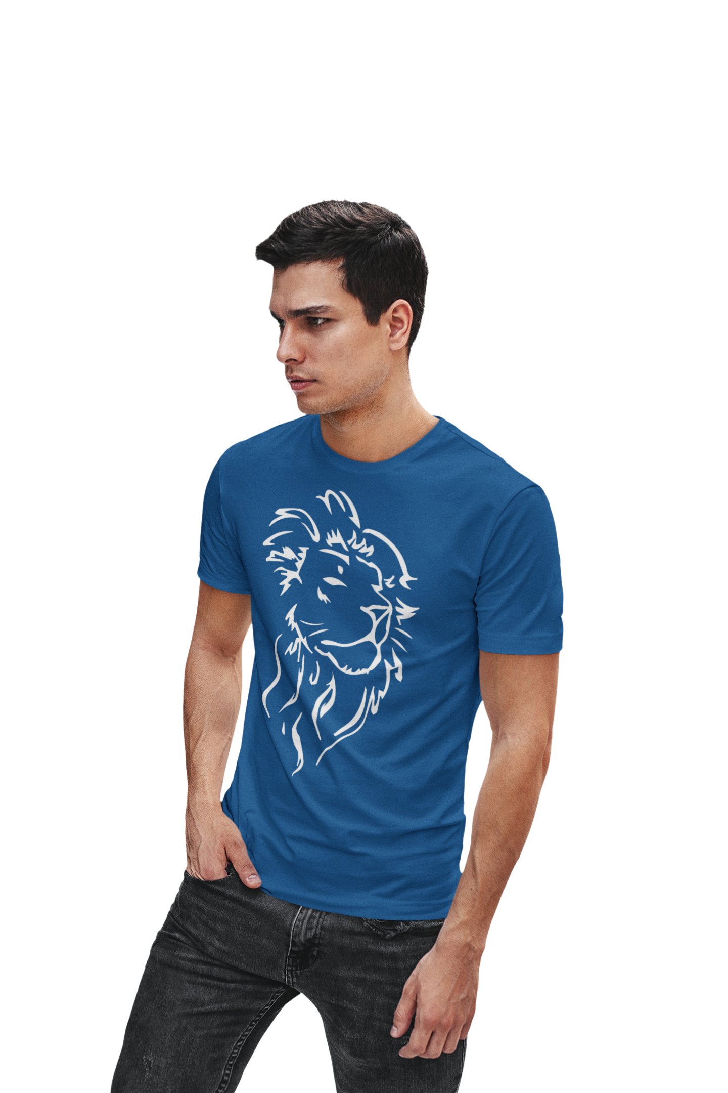 Lion face, (BG White) (Blue T) - Printed Zodiac Sign Tshirts - Made especially for astrology lovers people