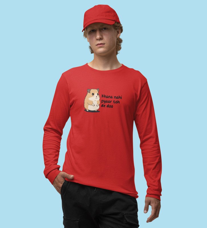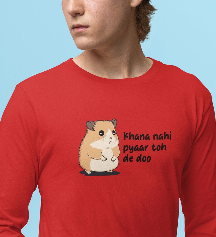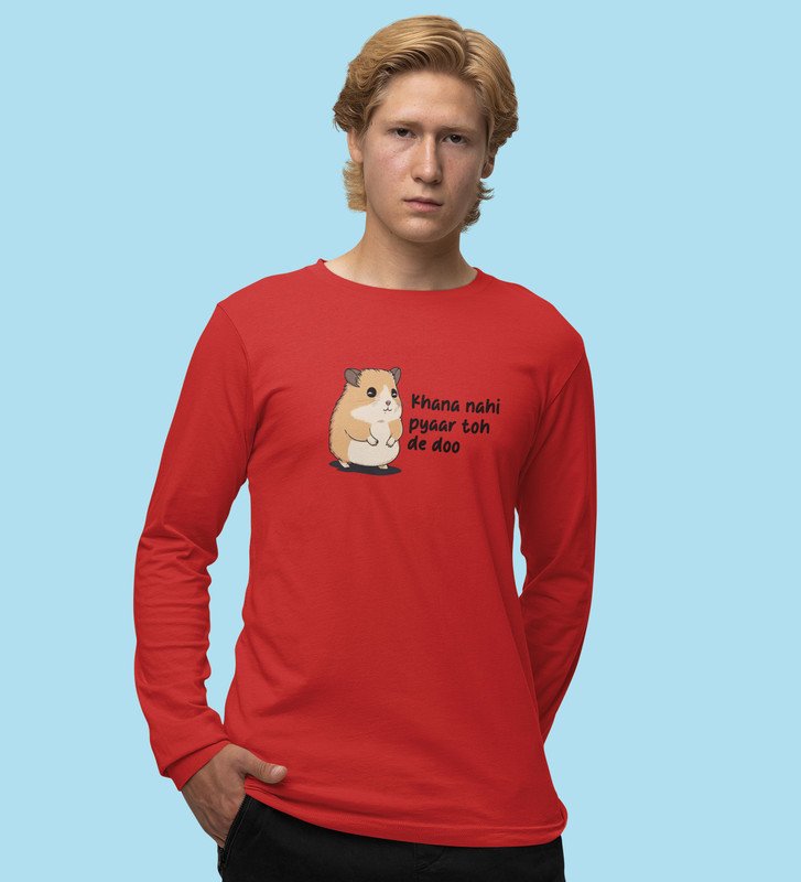 Little Hamster Wants Love: Attractive Printed (red) Full Sleeve T-Shirt For Singles