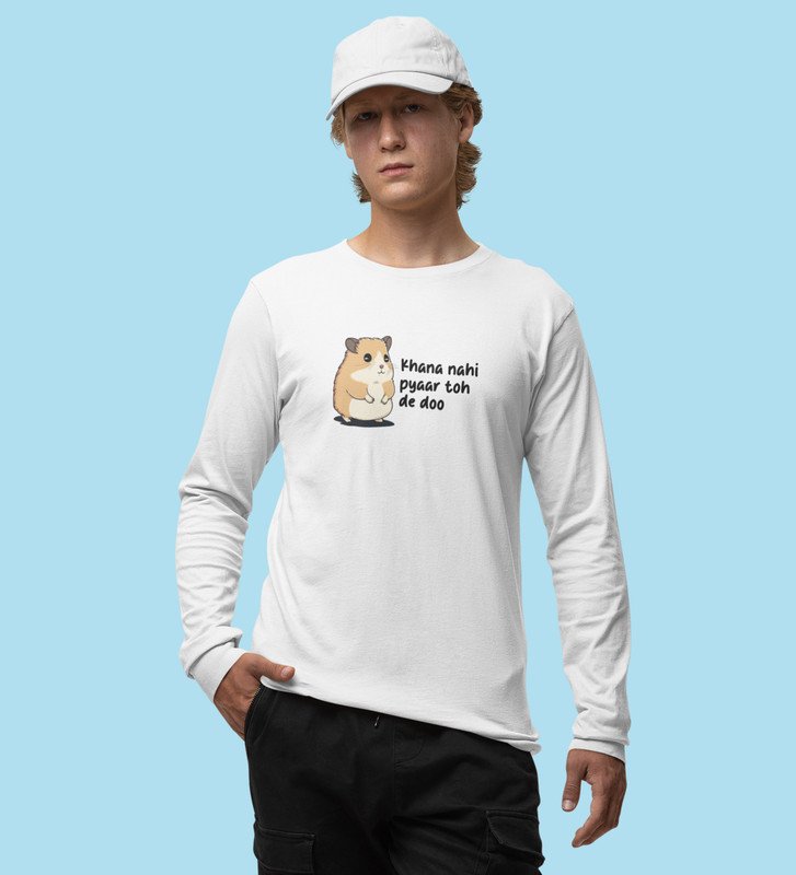 Little Hamster Wants Love: Attractive Printed (white) Full Sleeve T-Shirt For Singles